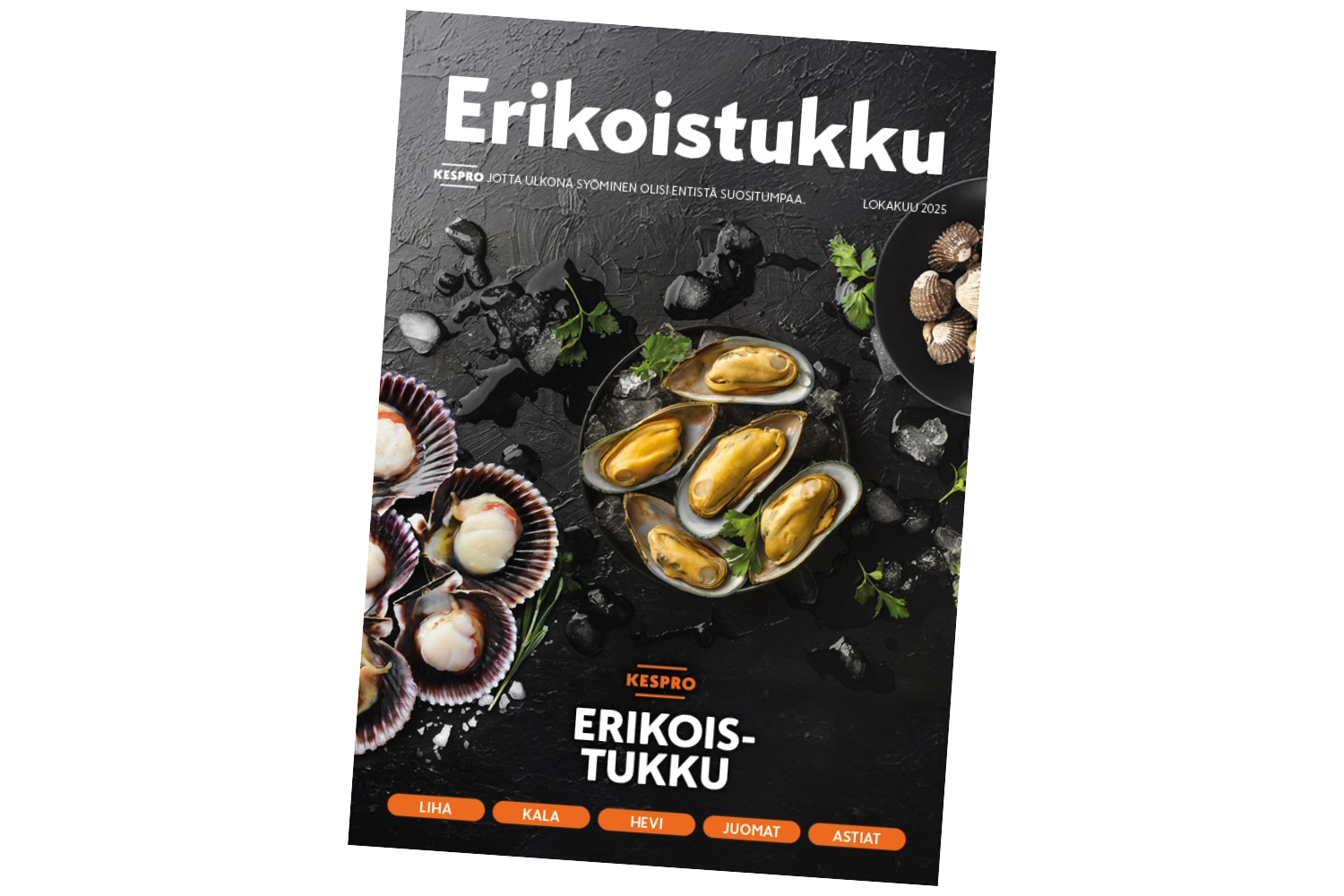 Meiltä löydät laajan ja erilaistavan valikoiman tuoretuotteita; lihaa, kalaa, hedelmiä ja vihanneksia. Oikein valitut juomat ja kauniit astiat täydentävät asiakaskokemuksen. Kespro Erikoistukun avulla voimme tarjota entistä syvällisempää ja räätälöidympää palvelua näissä tuoteryhmissä – inspiraatiota, trendejä ja hyvää fiilistä unohtamatta!