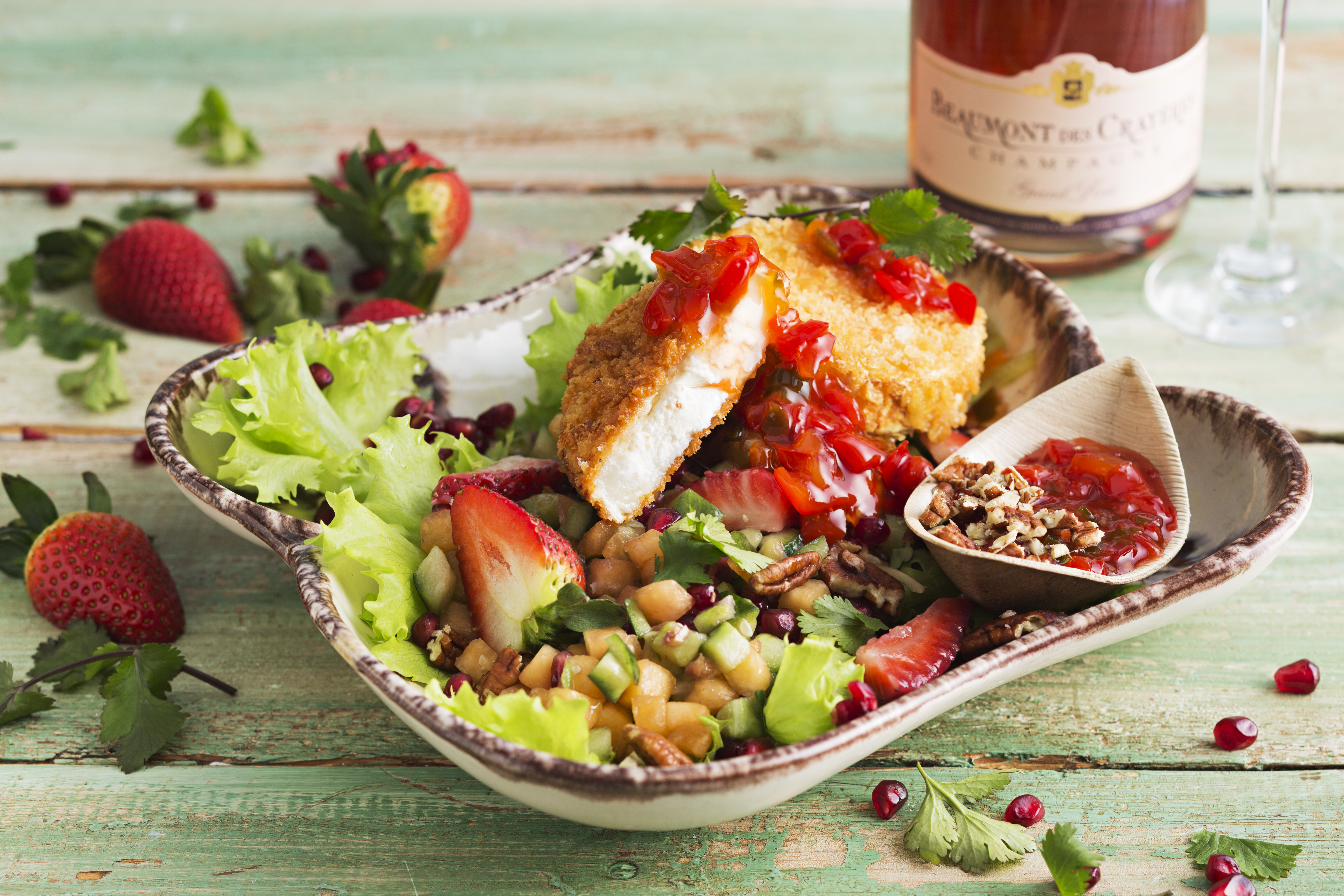 7. Friteeraa paneroidut vuohenjuustoviipaleet rasvakeittimessä tai reilussa öljyssä pannulla.