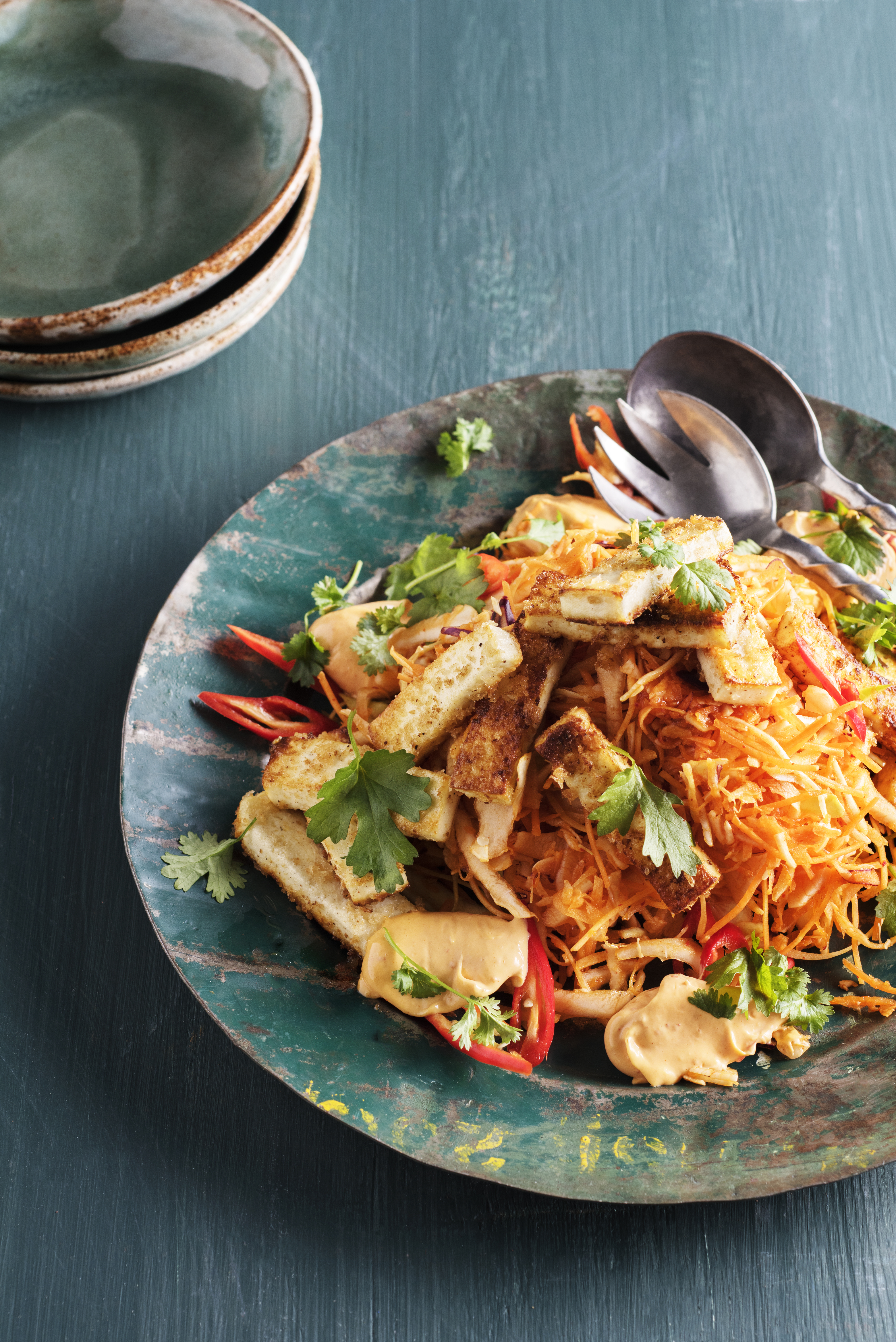 2. Sekoita kaikki marinadin raaka-aineet keskenään. Viipaloi ja suikaloi liha ohuiksi lastuiksi. Sekoita lihasuikaleet marinadiin ja anna maustua kylmässä vähintään 30 minuuttia.