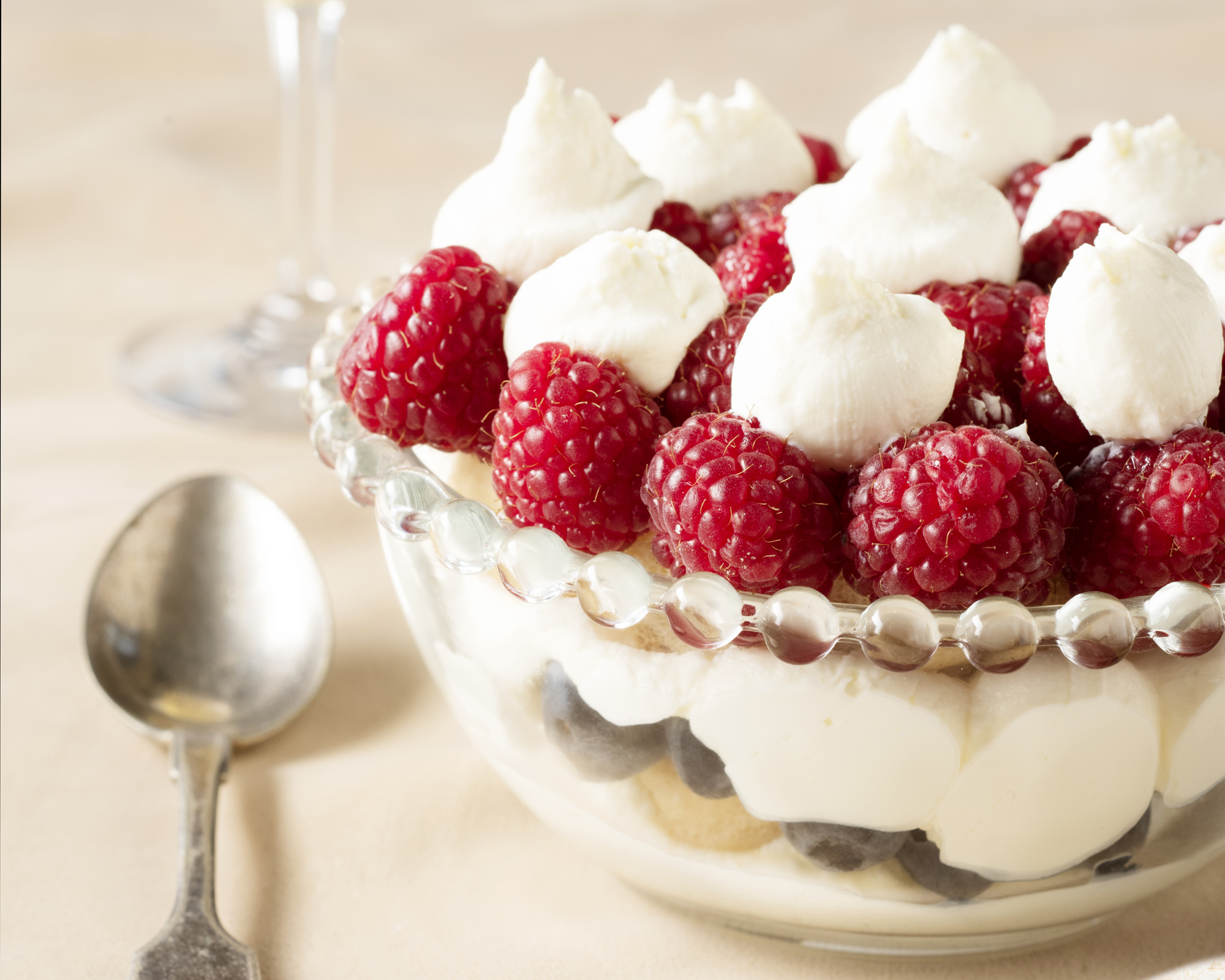 Tiramisuvaahto on nopeasti valmistuva italialainen jälkiruoka, joka koristellaan sesongin tuoreilla mansikoilla.