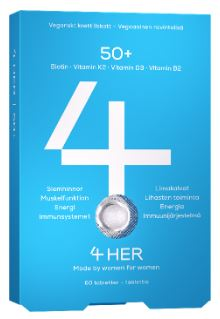 Tukee yli 50-vuotiaiden naisten lihastoiminnan ja limakalvojen terveyttä.Biotiini edistää limakalvojen ja energia-aineenvaihdunnan pysymistä normaaleina.D-vitamiini auttaa ylläpitämään lihasten ja luuston, sekä immuunijärjestelmän normaalia toimintaa.