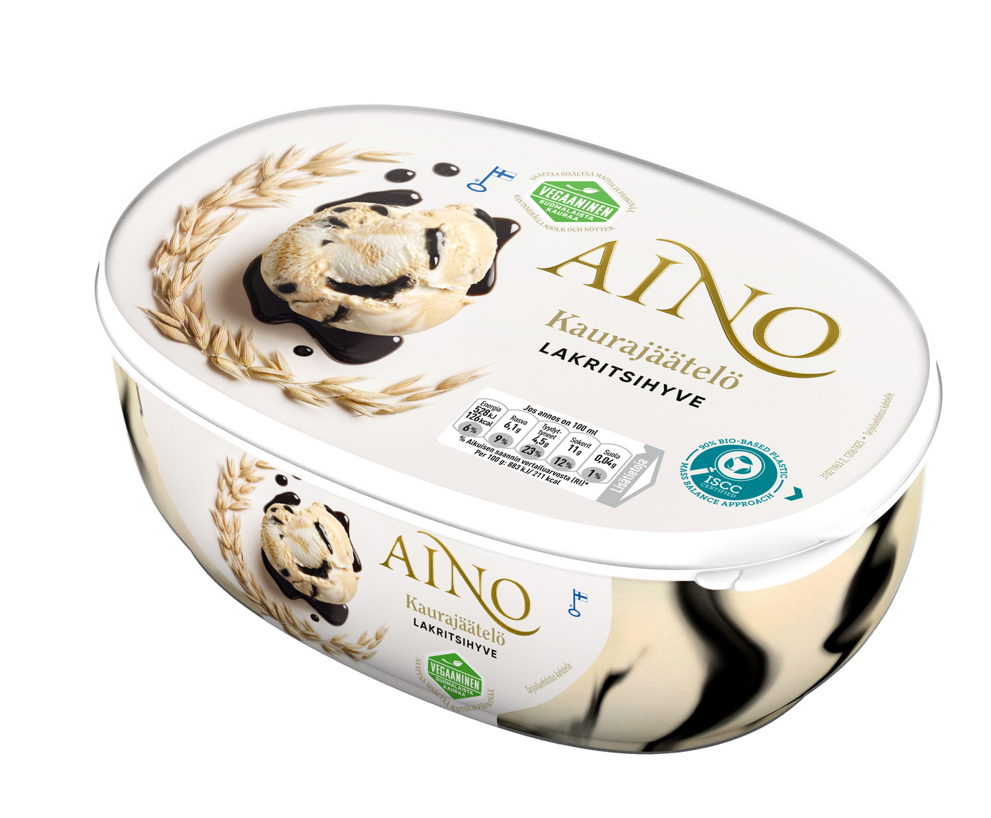 Aino-jäätelöt kuuluvat suomalaisten suosikkijäätelöihin vuodesta toiseen. Makuyhdistelmiä löytyy jokaiseen makuun ja herkutteluhetkeen. Aino on lupaus täyteläisestä ja sametinpehmeästä suomalaisesta jäätelöstä. Aino-kaurajäätelöt valmistetaan suomalaisesta kaurasta ja korkealaatuisista raaka-aineista Suomessa, Turengin tehtaalla. Kotimaisuudesta viestii Avainlippu-merkintä. Aino pakkauksen valmistuksessa käytetään 90% ISCC-sertifioitua biopohjaista muovia massabalanssiperiaatteella. Pakkaukset ovat 100% kierrätettäviä muovinkierrätyksessä.