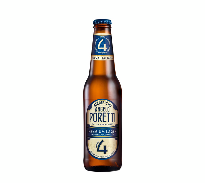 Premium lager jossa on 4 erilaista humalaa. Päähumala tuotteessa on Columbus humala, joka antaa sille yrttisen ja mausteisen maun. Luppoli 4 on Poretti-sarjan jalokivi ja myydyin variantti Italiassa.