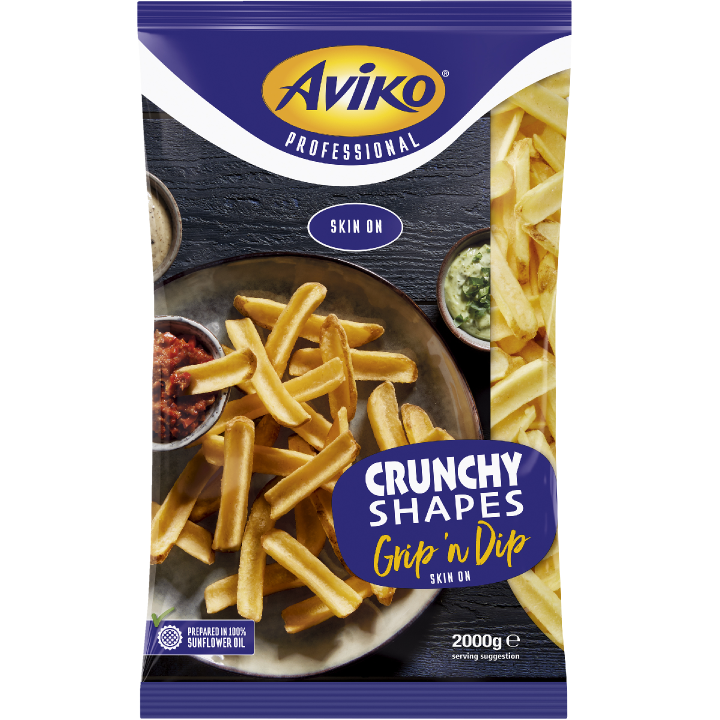 Grip 'n Dip on pakastettu erittäin rapea, päällystetty ja esipaistettu U:n muotoinen ranskanperuna, joka sopii täydellisesti dippaukseen ja lusikkaamiseen. Grip'n Dipissä on Super Crunch -pinnoite, joka pitää sen rapeana pitkään. Monipuolinen ranskanperuna, joka on laatutestattu take away- ja kotiinkuljetuksiin ja voidaan tarjoilla pikkuruokana, välipalana, lisukkeena tai premium-hampurilaisen lisävarusteena.