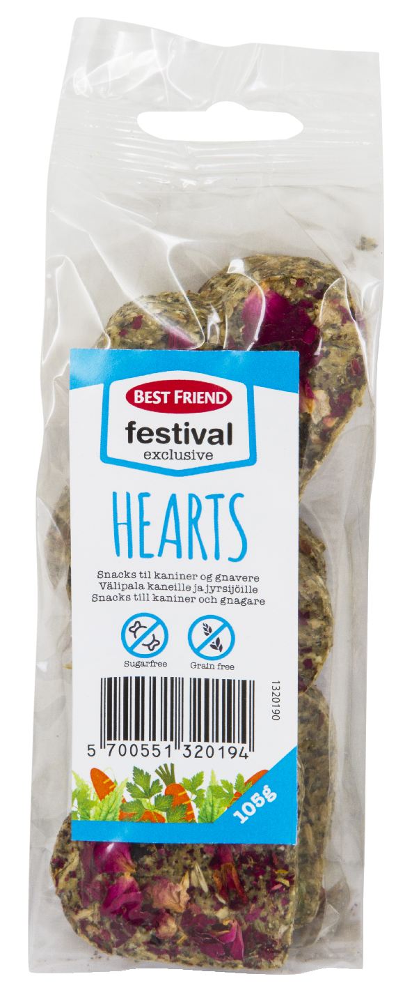 Festival Exclusive sydänsnacksit on laadukas ja terveellinen makupala jyrsijöille. 100% viljaton ja lisäaineeton eikä sisällä lisättyä sokeria.