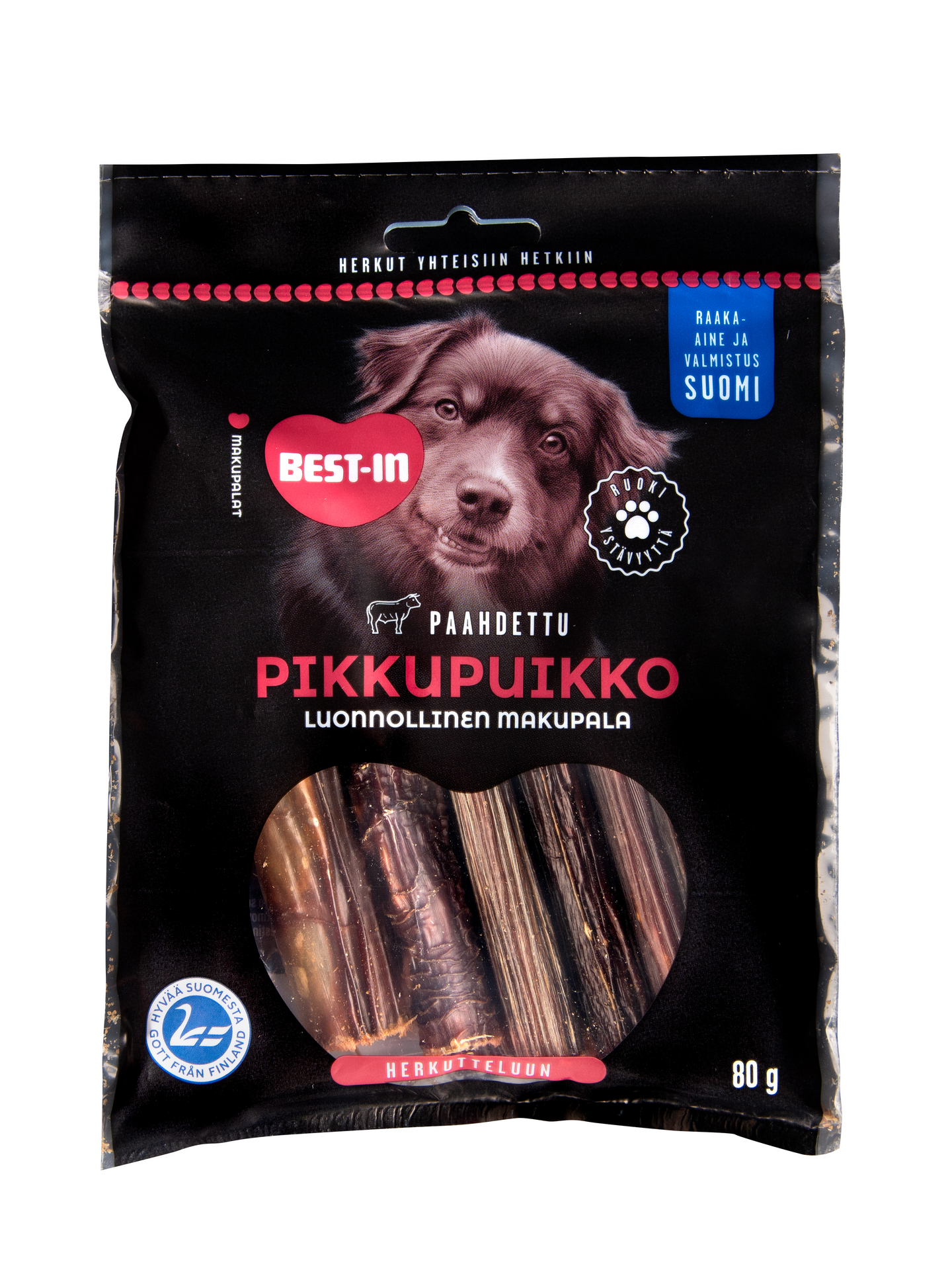 Best-In Pikkupuikko on suomalainen makupala, joka on valmistettu 100% suomalaisesta naudasta. Best-In –makupalojen herkullisuus piilee puhtaissa, suomalaisissa raaka-aineissa ja hellävaraisessa kypsennyksessä. Herkut paahdetaan rapeaksi uunissa ja pakataan tämän jälkeen ilmatiiviisin pakkauksiin. Valmistusmenetelmä takaa tuotteen säilyvyyden – eikä säilöntä-, lisä- tai väriaineita tarvita. Toimimme Ruokaviraston valvonnan alla ja tuotteiden sekä toiminnan laadun takeena meillä on laatu- ja ympäristösertifikaatit.