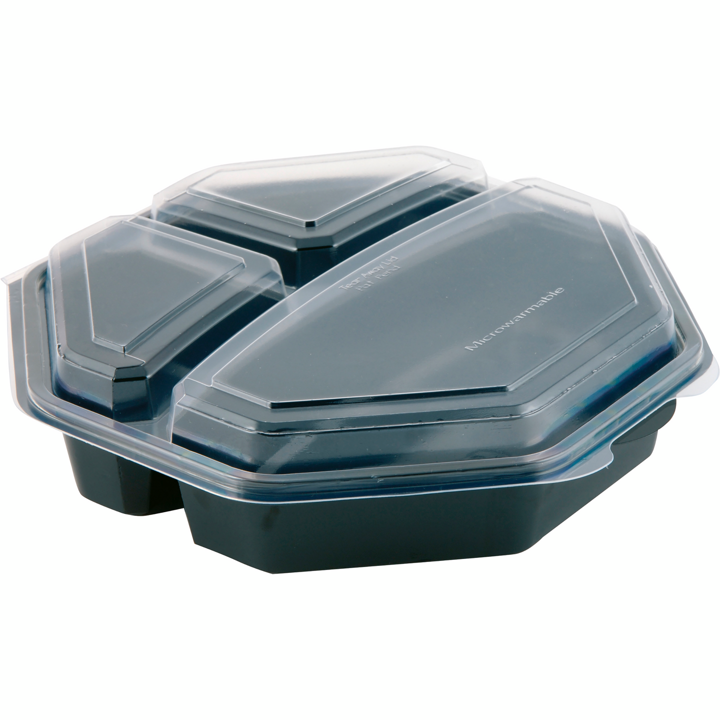Biopak Octaview rasia 220/220/650ml 230x230x60mm 3-lokeroinen, musta/kirkas PS 30kpl