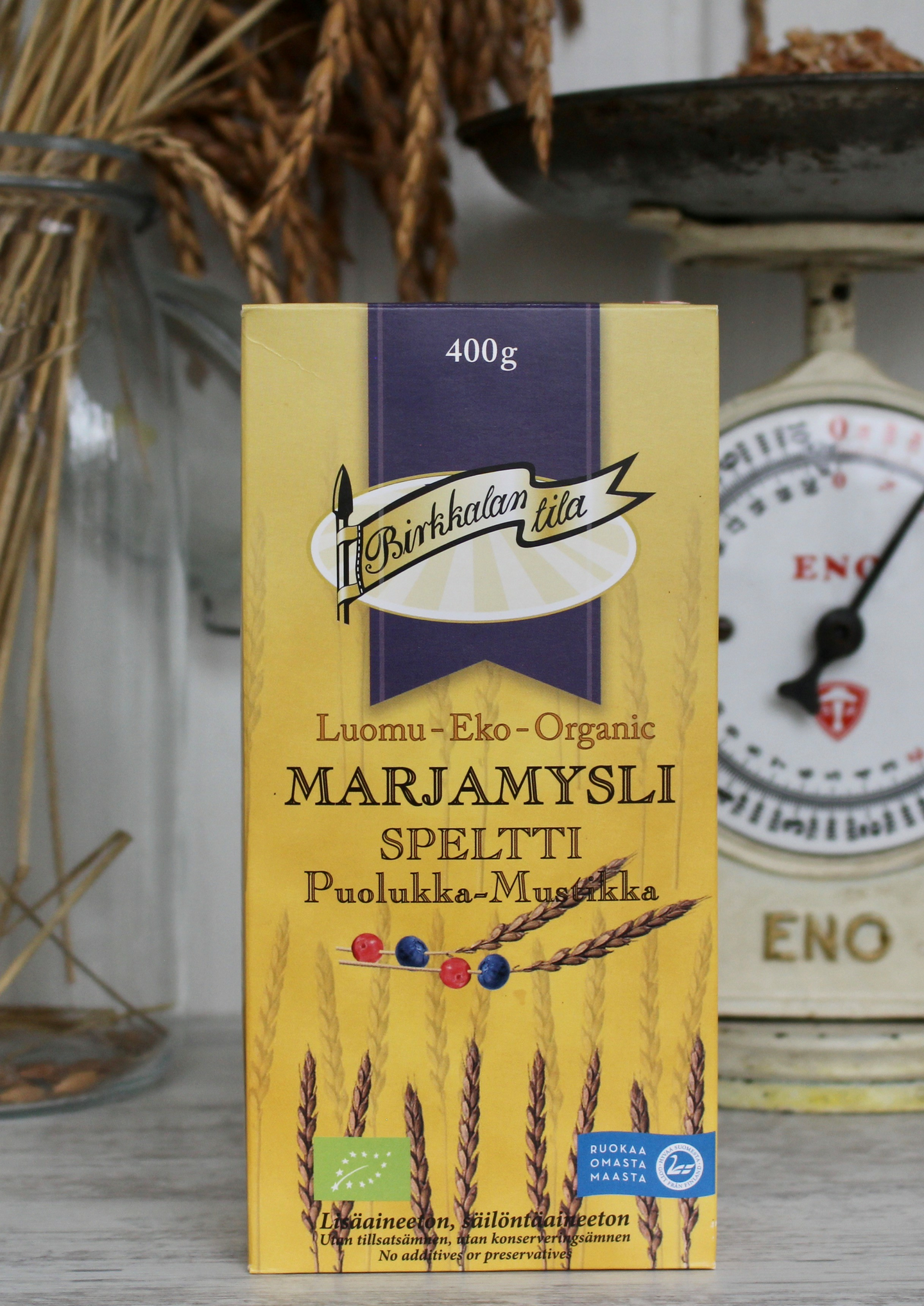 Birkkalan Luomu marjamysli speltti puolukka-mustikka 400g
