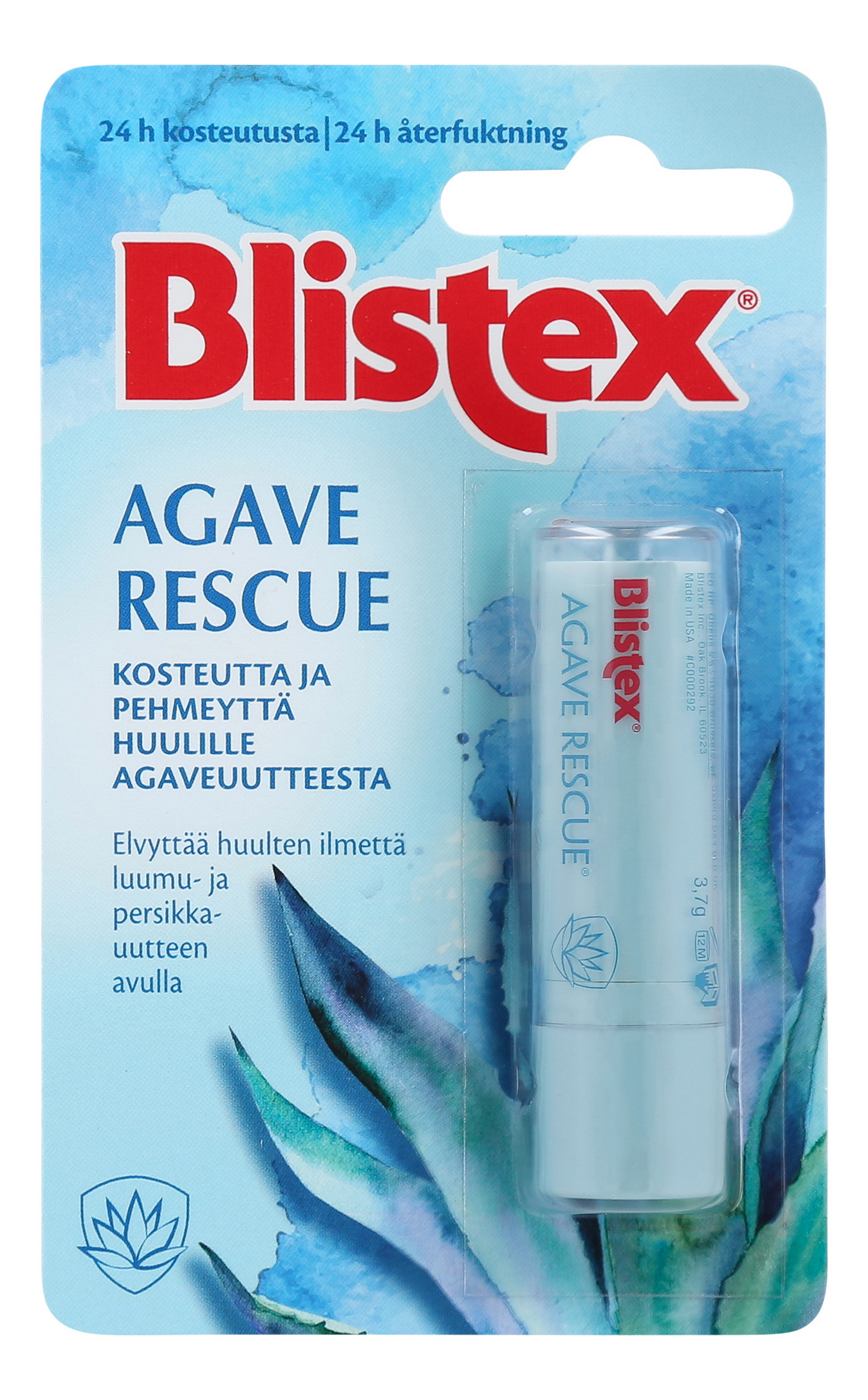 Blistex Agave Rescue huulivoide kosteuttaa huuliasi jopa 24 tuntia. Agave-uute tekee huulista pehmeäntuntuiset ja luumu- ja persikkauute auttaa elvyttämään huulten ilmettä. Ihotautilääkärien hyväksymä.