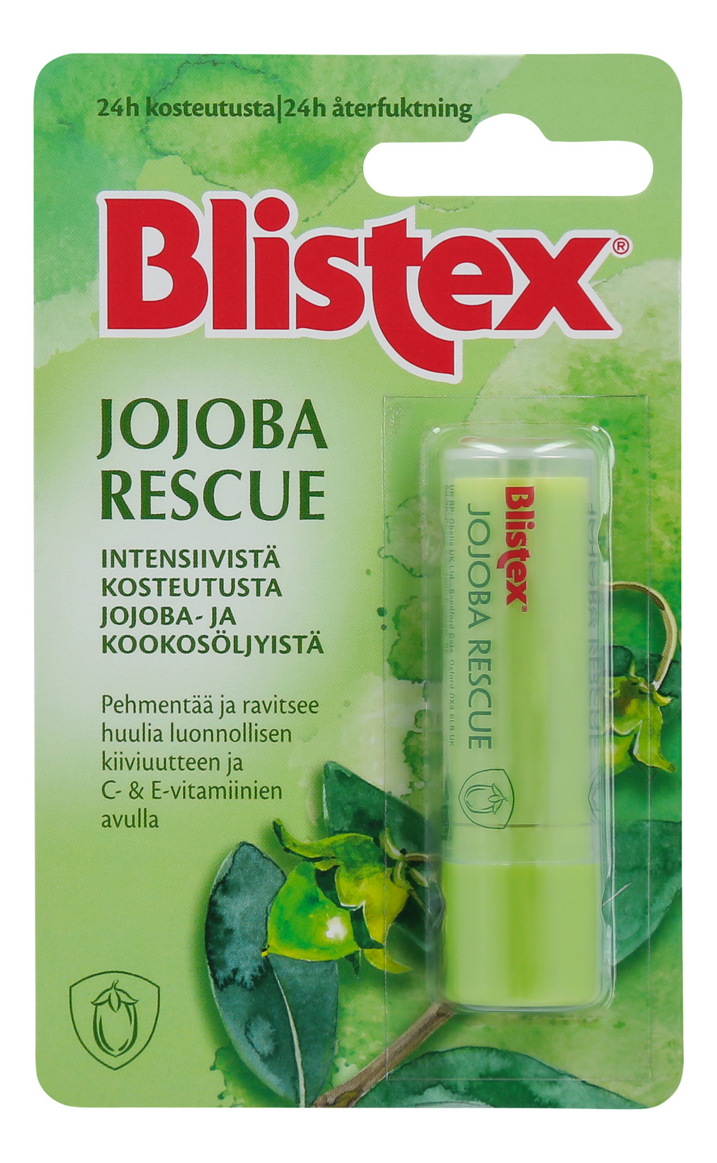 Blistex Jojoba Rescue huulivoide kosteuttaa huuliasi jopa 24 tuntia. Jojoba- ja kookosöljy kosteuttavat intensiivisesti ja luonnollisen kiiviuutteen C- ja E -vitamiinit pehmentävät ja ravitsevat huulia. Ihotautilääkärien hyväksymä.