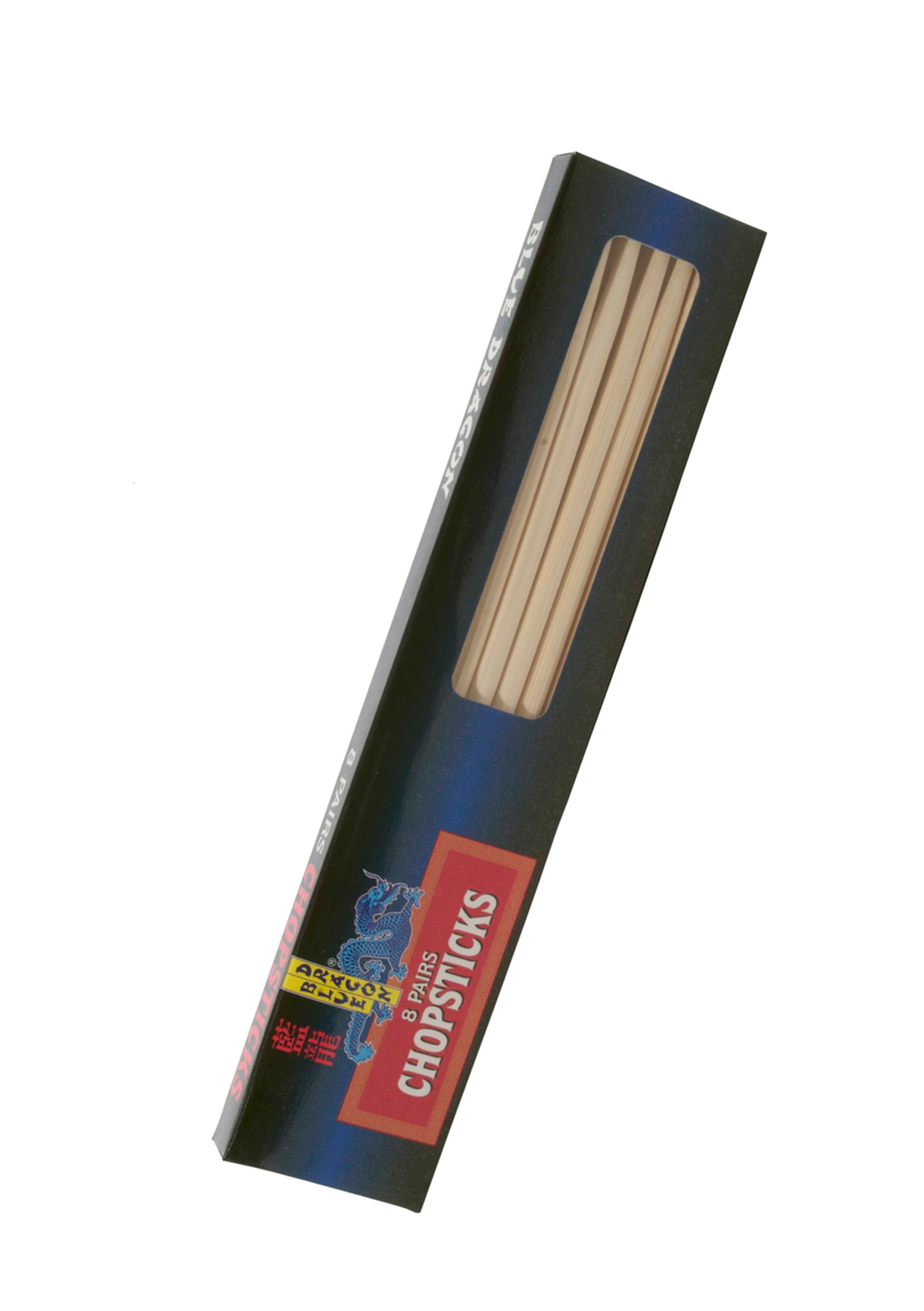 Bambusta valmistettuja kertakäyttöisiä syömäpuikkoja. Pakkauksessa on kahdeksan paria syömäpuikkoja.
