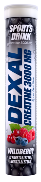 Metsämarjanmakuinen kreatiinivalmiste. Dexal Sport Nutrition poretabletit sisältävät kreatiinia, joka parantaa fyysistä suorituskykyä peräkkäisissä lyhytkestoisissa ja korkeatehoisissa harjoituksissa. Edullinen vaikutus saavutetaan nauttimalla päivittäin 3 g kreatiinia.