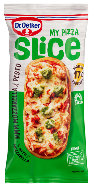 My Pizza Slice Mozzarelle&Pesto valmistuu 2,5 minuutissa mikroaaltouunissa. Rapea pohja, herkulliset mozzarella, aromikas pesto ja maukas tomaattikastike takaavat pizzanautinnon missä ikinä oletkaan. Pohjan täysjyvävehnä ja proteiinipitoinen skyr täydentävät kokonaisuuden.