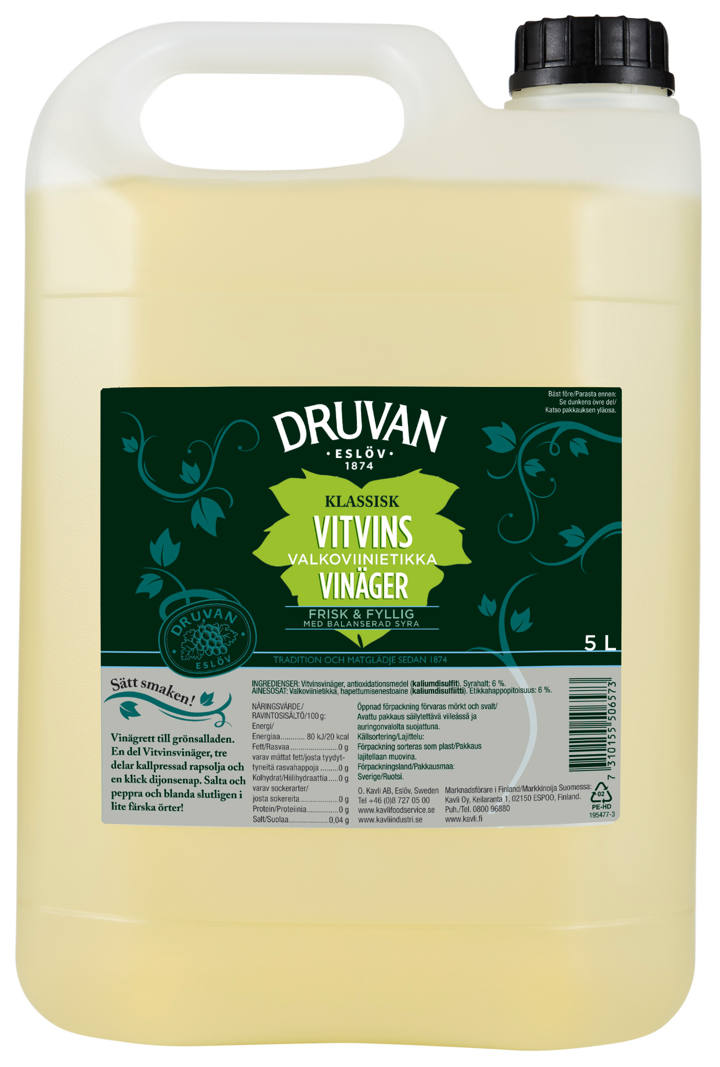 Valkoviinietikka, hapettumisenestoaine (KALIUMDISULFIITTI). Etikkahappopitoisuus 6 %.