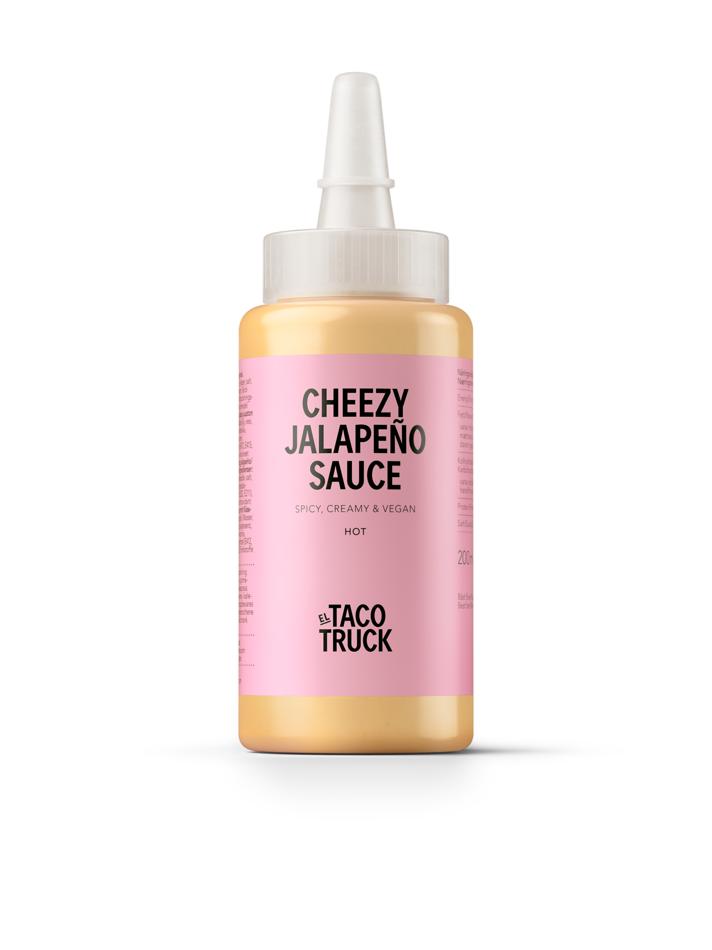 Cheezy Jalapeno Sauce on vegaaninen cheddar-makuinen kastike, jossa nyt hieman lisäpotkua jalapenosta. Täydellinen nachojen, perunoiden tai tacojen päälle.