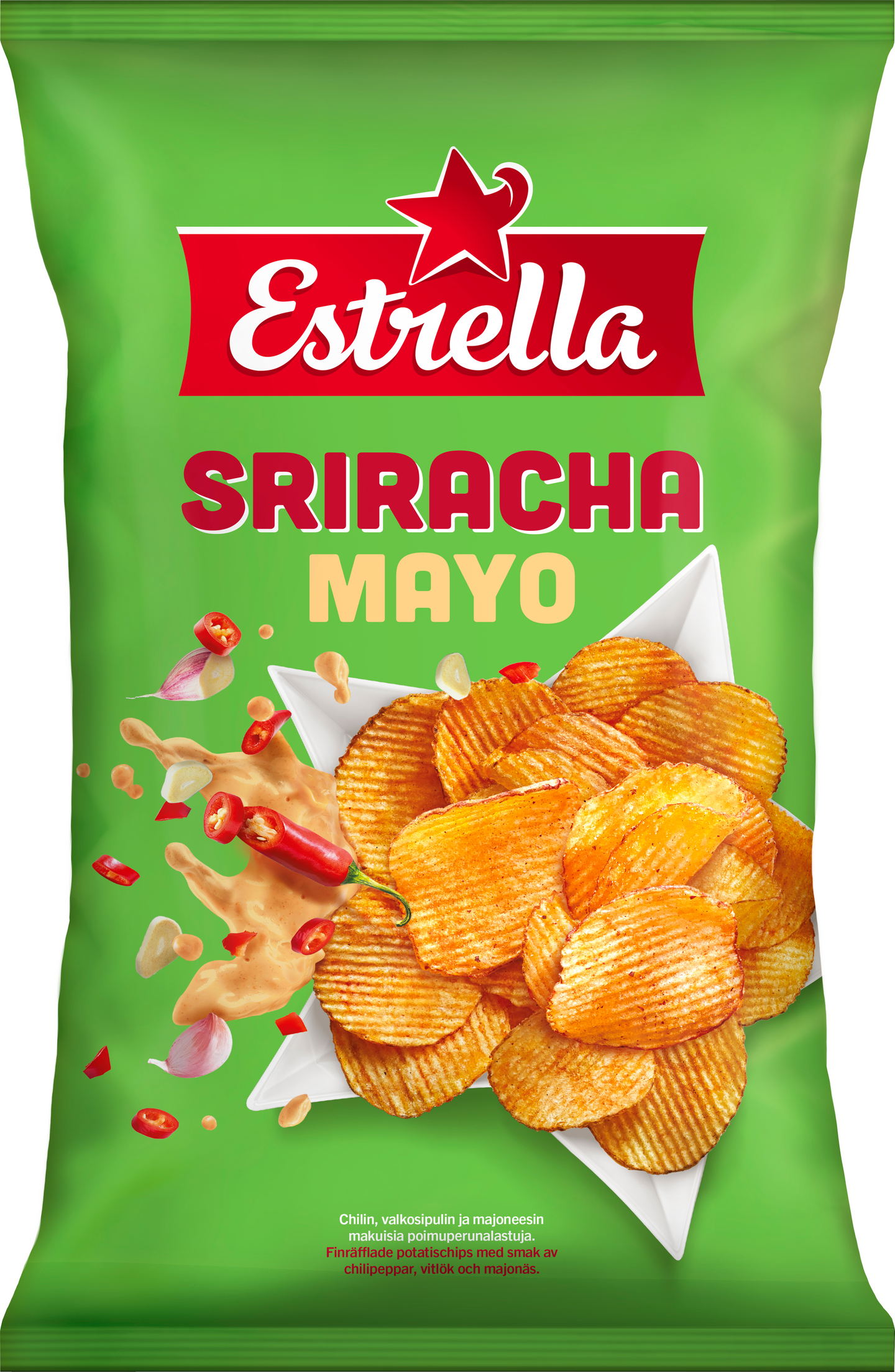 VegaaninenTämä sipsi ei jätä ketään kylmäksi! Sriracha-majoneesin makuiset rapeat kevyesti poimutetut perunalastut tarjoavat täyteläisen chilin maun täydellisellä lämmöllä.