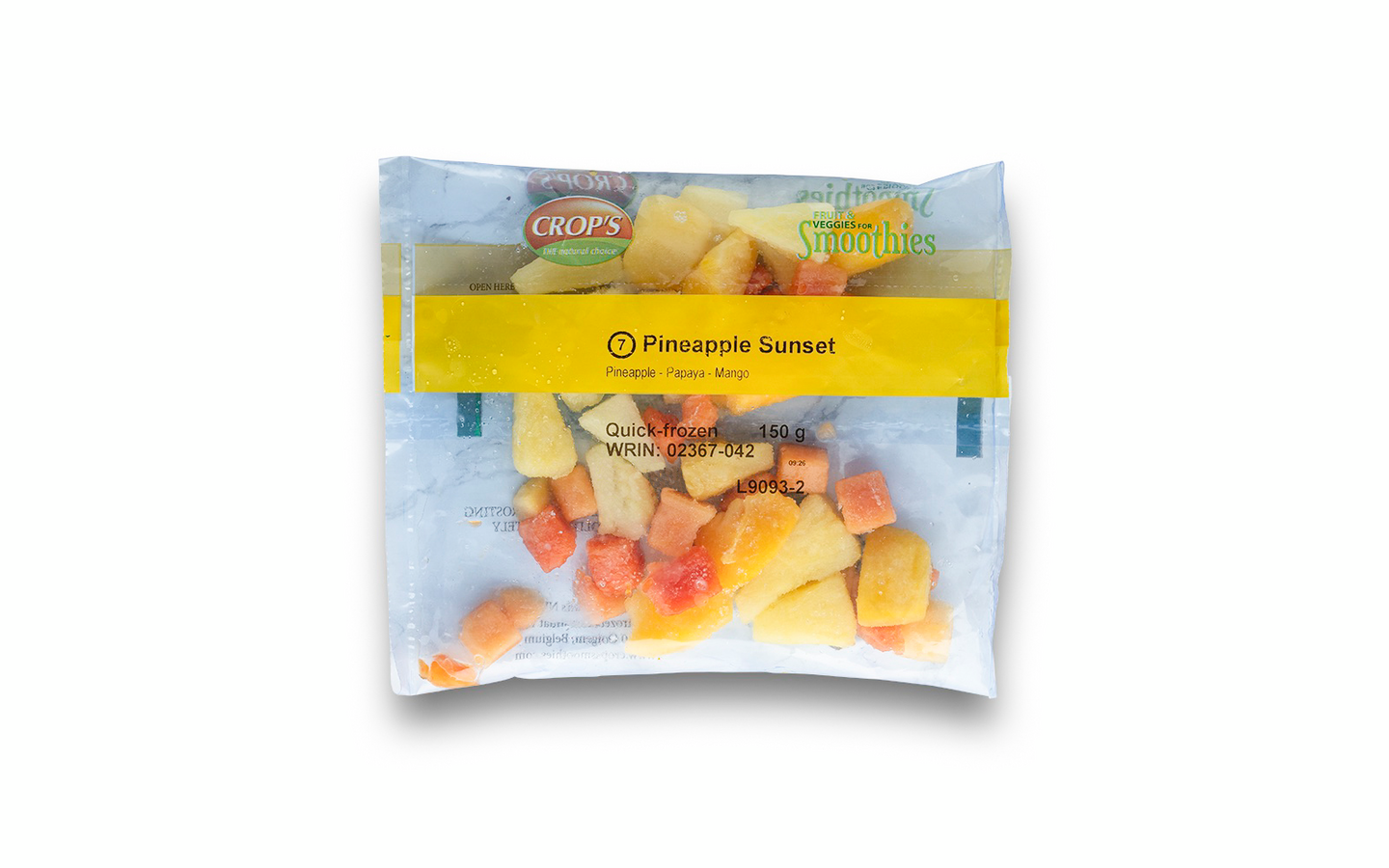 VegaaninenHedelmäisen trooppinen smoothiemix, jossa ananasta, papaijaa sekä mangoa. Pakastetuissa aineksissa vitamiinit sekä maku säilyvät erinomaisina ja annospussit mahdollistavat kätevän valmistuksen suoraan tilauksesta asiakkaalle. Lisää joukkoon esimerkiksi mehua, valitsemaasi maitoa tai jogurttia.