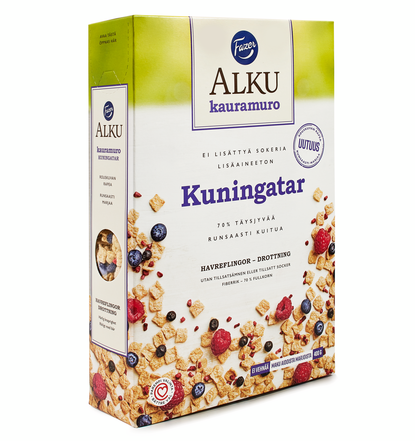 Rouskuvan rapeat Fazer ALKU -murot valmistetaan suomalaisesta viljasta. Tuotteet on makeutettu raikkaalla omenamehulla. Ne eivät sisällä lainkaan lisäaineita, maku tulee aidoista marjoista. Murot sopivat aamiaiseksi tai välipalaksi maidon, kaurajuoman tai jugurtin kanssa nautittaviksi tai naposteltaviksi sellaisenaan.