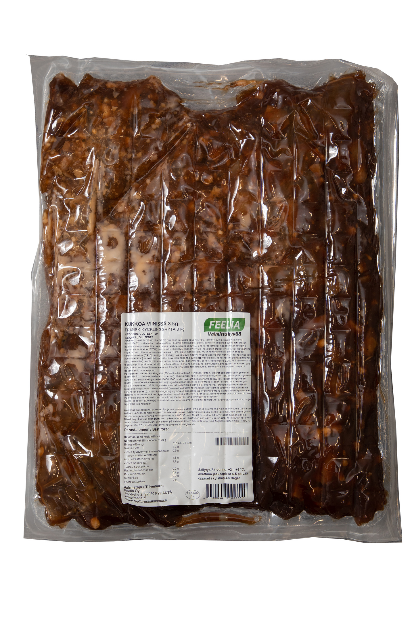 MaidotonVakuumiin pakattu, valmis ranskalaistyyppinen broilerikastike/-pata. Maidoton, gluteeniton.