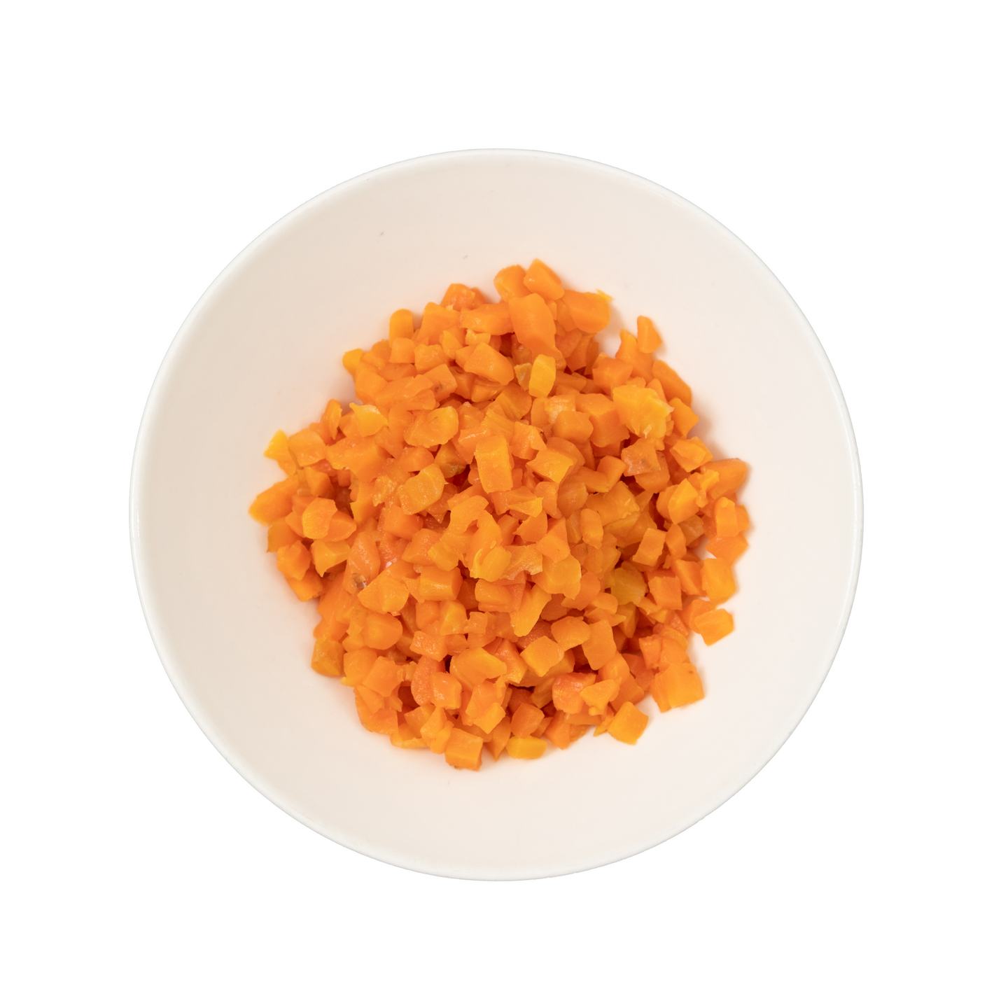 VegaaninenVakuumiin pakattuja, kypsiä porkkanakuutioita mm. salaatteihin ja rosolliin.