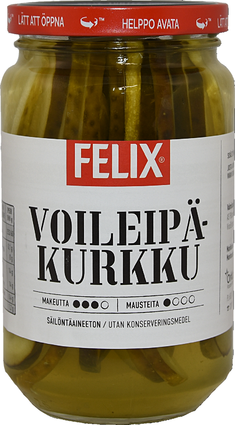 Felix® Pitkittäin viipaloitu voileipäkurkku on nimenomaan suunniteltu sopimaan leivän päälle. Näistä kurkuista riittää taatusti kurkkua joka puraisulle. Rullalle kääräistynä kurkkuviipale sopii myös vaikka perinteisen voileipäkakun koristeluun. Herkullisessa mausteliemessä on sopivasti makeutta ja mausteita ja se antaa kurkulle herkullisen maun, pitkittäin viipalointi tekee kurkusta monikäyttöisen. Kokeile. Felix Pitkittäin viipaloitu voileipäkurkku on säilöntäaineeton ja sopii vegaanista ruokavaliota noudattavalle. Felix - herkkuja ruokapöytään®.