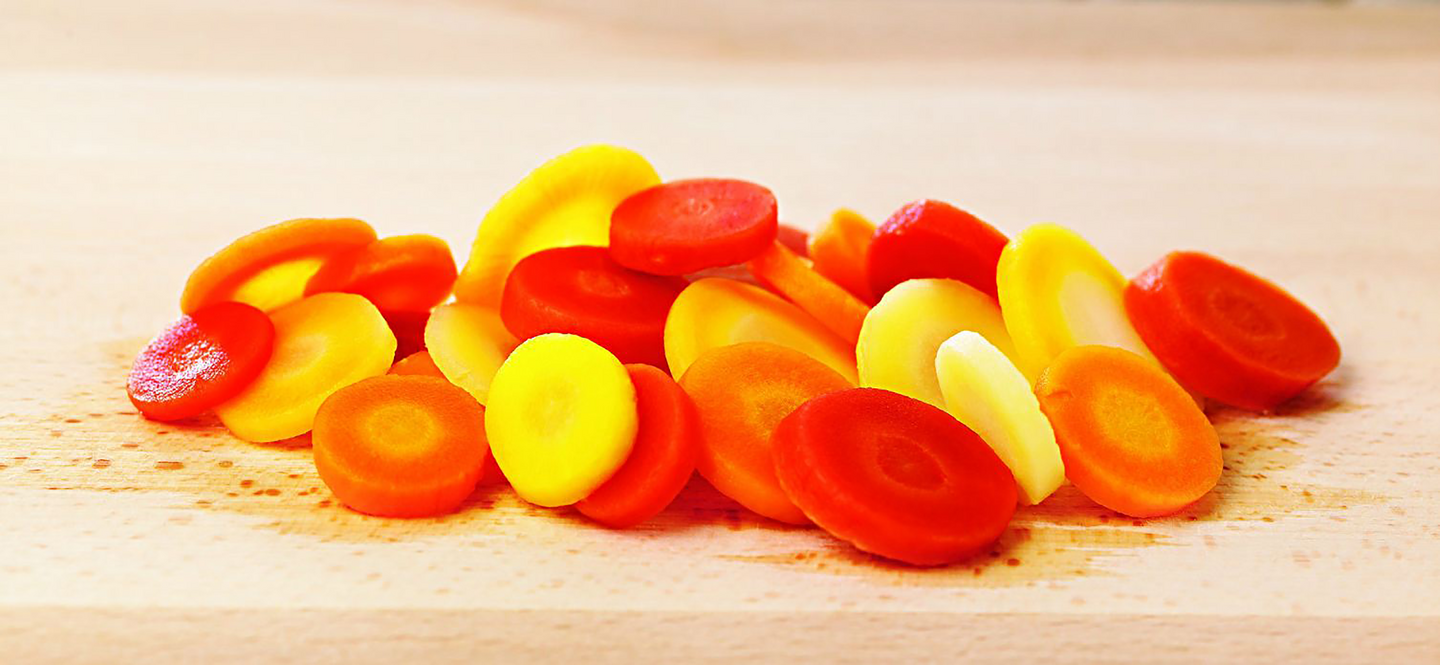 VegaaninenEsikeitetyt keltaiset, punaiset ja oranssit porkkanat tuovat väriä ateriaan.