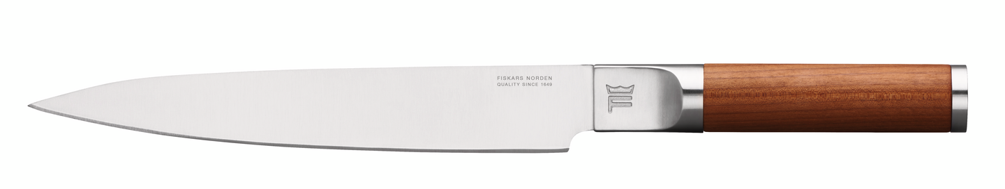Fiskarsin Norden-veitset valmistetaan ensiluokkaisista materiaaleista suomalaisten veitsentekoperinteiden mukaisesti. Laadukas veitsenterä on kestävää saksalaista kovaterästä, joka pysyy terävänä pitkään. Tehokkuutta lisää optimaalinen 26 asteen teroituskulma. Veitsen kahva on suomalaista lämpökäsiteltyä koivua. Veitsi on valmistettu Suomessa.