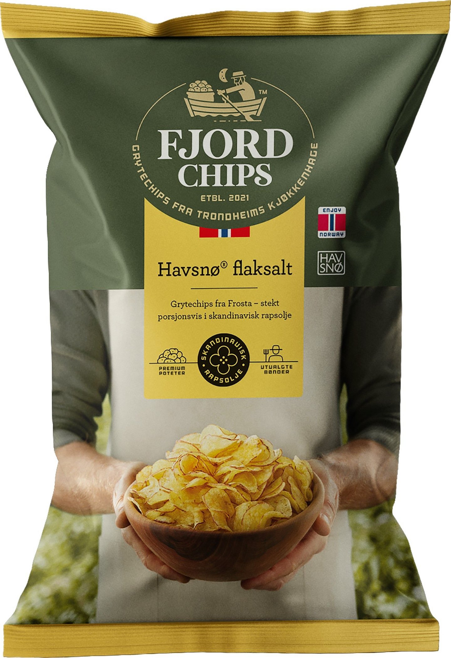 VegaaninenNämä perunasipsit ovat yksinkertaisen herkullisia ja sisältävät vain muutaman, tarkkaan valitun ainesosan: perunat kuorineen, rapsiöljyn sekä suolan ja korkealaatuisen HAVSNØ®-merisuolan. HAVSNØ® on kiteytetty hiutalesuola, joka valmistetaan käsin Norjan Gossan saarella, tuoreen ja kylmän meriveden antimista. Sipsien luonnollisuus näkyy ja maistuu – ei keinotekoisia lisäaineita tai allergeeneja, vain aidot ja puhtaat raaka-aineet. Perunoiden kuoret tuovat makuun syvyyttä ja rapeutta, kun taas rapsiöljy antaa täydellisen tasapainon paistamiselle. HAVSNØ®-suola viimeistelee jokaisen sipsin tuoden esiin luonnollisen, suolaisen aromin. Täydellinen valinta herkutteluun silloin, kun arvostat aitoja makuja ja yksinkertaisia, mutta laadukkaita raaka-aineita.