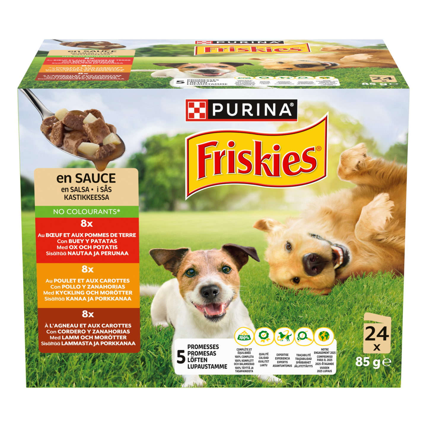 Friskies 24x85g adult nautaa, lammasta ja kanaa kastikkeessa lajitelma 3 varianttia
