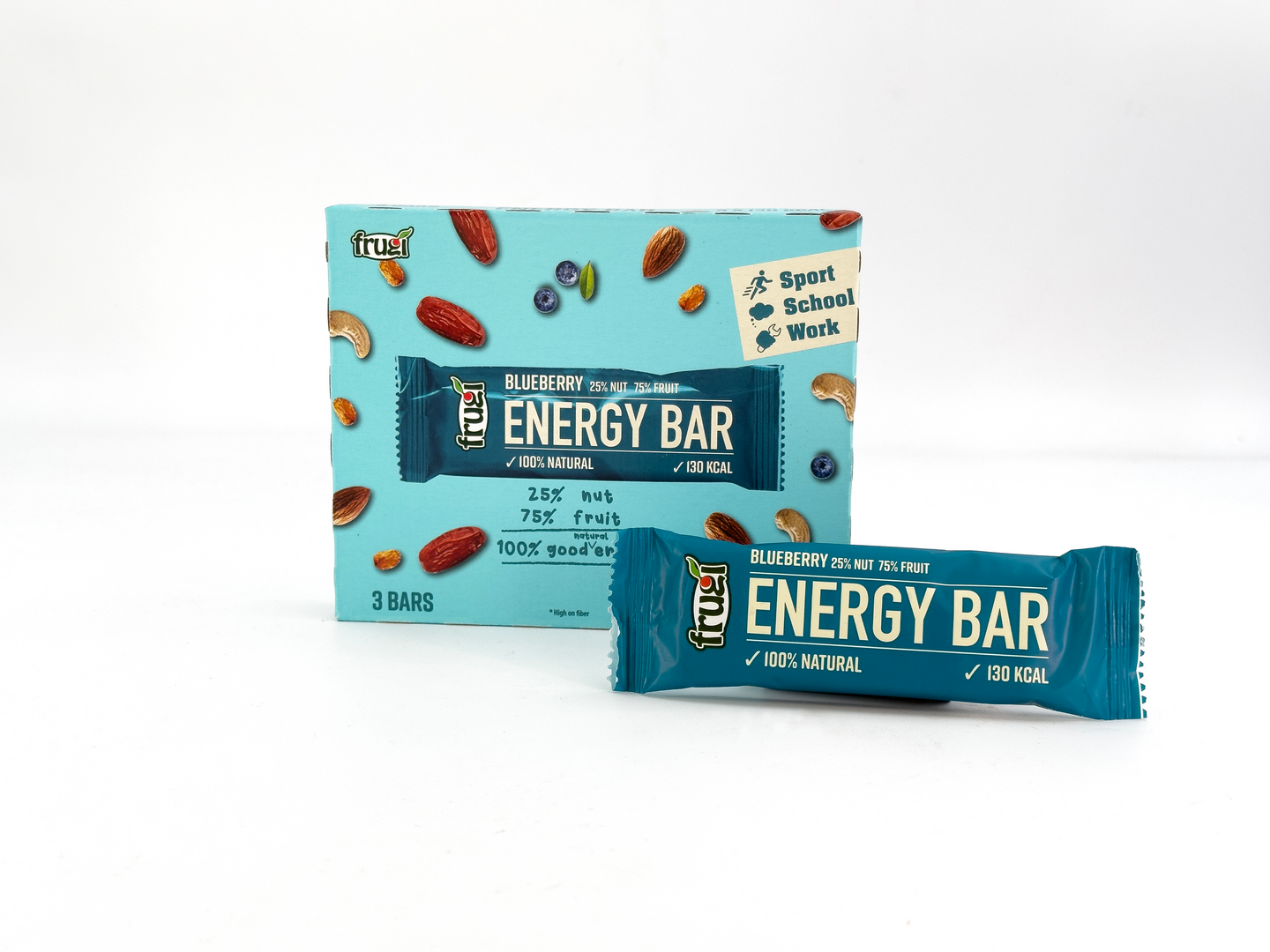 Hedelmäpatukka mustikoilla. Ainesosat: 56% taateleita, 17% rusinat, 15% CASHEWPÄHKINÄT, 10% MANTELEITA, 1% mustikkamehutiiviste, luonnollisia aromeja, MAAPÄHKINAT. Saattaa sisältää jäämiä kuorista, siemenistä, muista pähkinöistä, seesaminsiemenistä, maidosta ja soijasta. Säilytä kuivassa paikassa eikä liian lämpimässä.