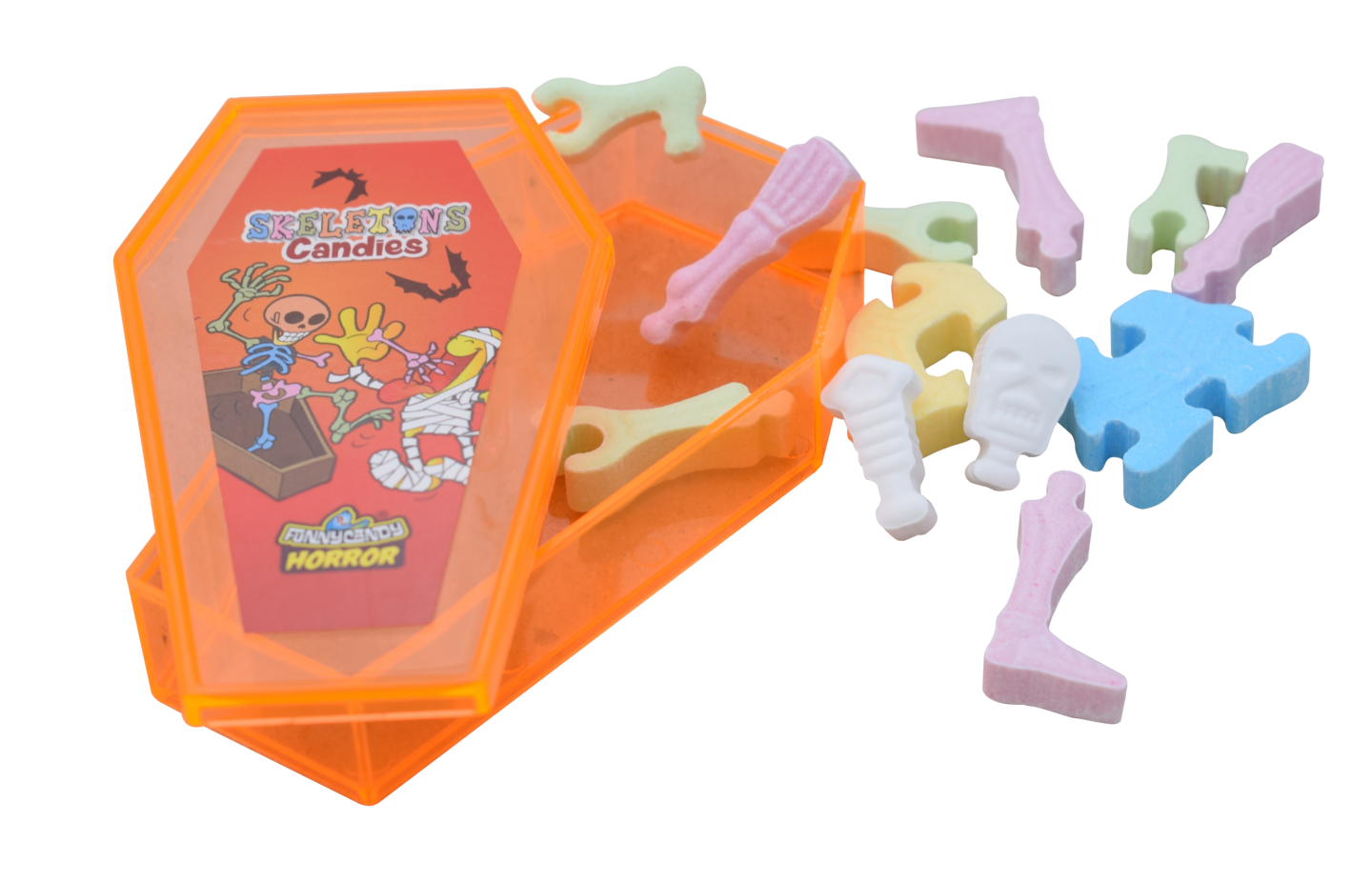 Huhuuuu! Hurrrjan hauska makeisarkku sisältää luurangonmuotoisia puristemakeisia.