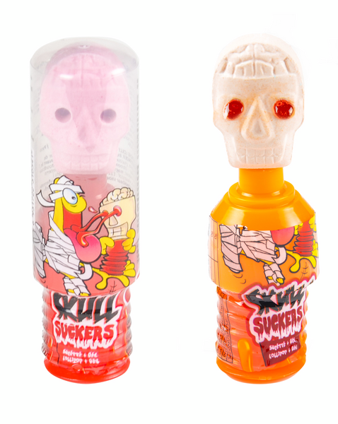 Skull Sucker on Halloweenin sopiva dipattava puristemakeistikkari, jossa monsteri-tikkaria voi dipata puristettavaan makeisgeeliin. Saatavana kolme eri makua: vadelma, mansikka ja cola.
