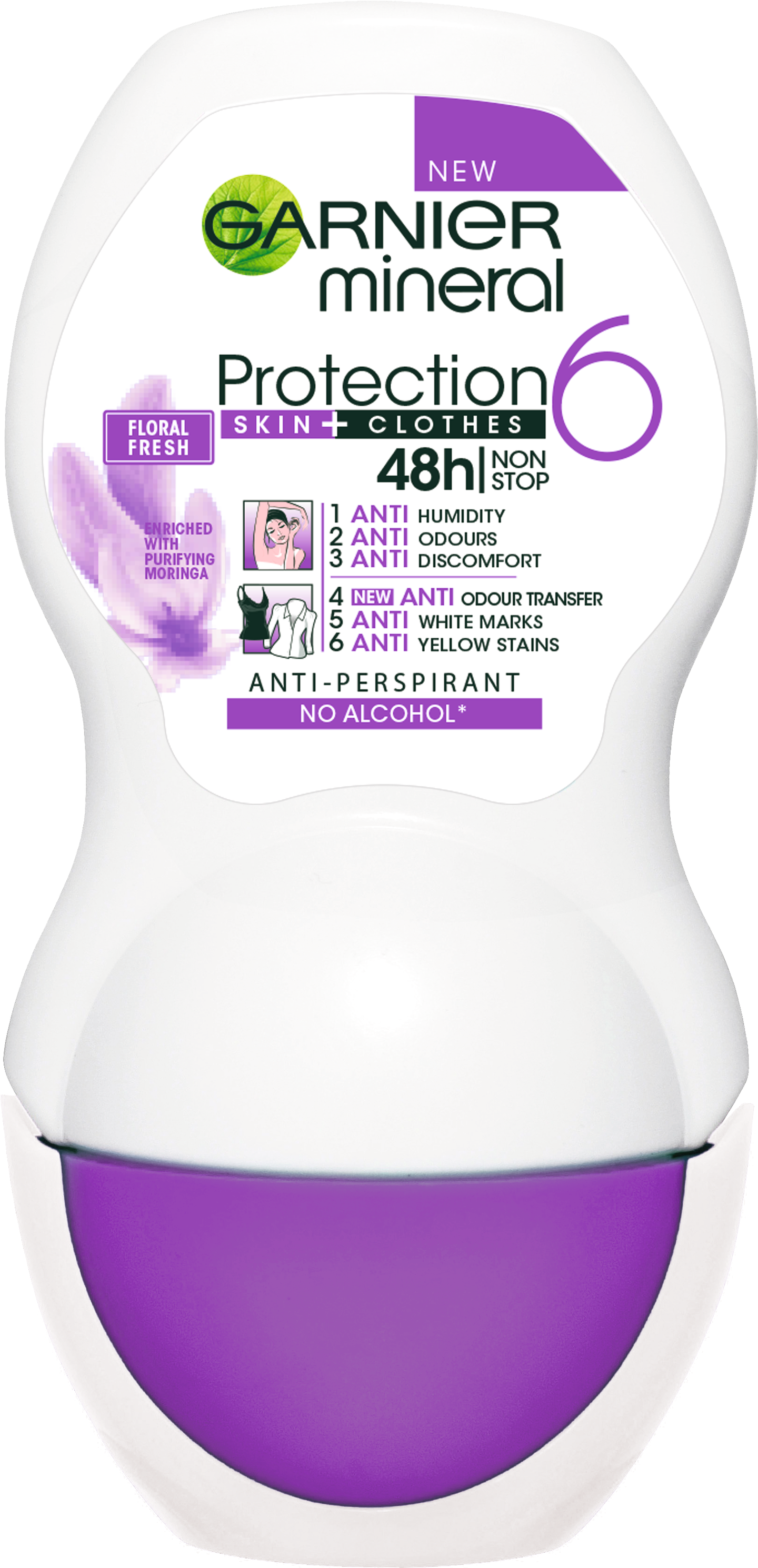 Koe Garnier Mineral Protection 5 Floral Fresh 48 H* roll-on-deodorantti, jolla on 5 vaikutusta. Antiperspirantti suojaa - hajulta - kosteudelta - epämukavalta tunteelta - valkoisilta jäljiltä - keltaisilta jäljiltä. Ei sisällä etyylialkoholia. Kenelle se sopii? Tuote sopii sinulle, jos haluat antiperspirantti roll-on-deodorantin, joka antaa 5-in-1-suojan ihollesi ja vaatteillesi. Tuoksu Nauti ihanasta kukkaisesta tuoksusta! Koko 50 ml
