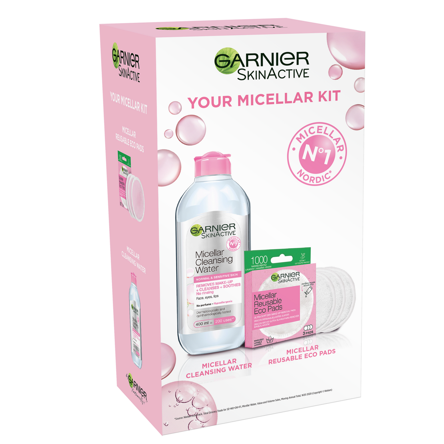Garnier SkinActive Sensitive Skin -lahjapakkaus sopii normaalille ja herkälle iholle. Pakkaus sisältää Micellar puhdistusveden ja uudelleenkäytettävät mikrokuitupesulaput. Micellar-puhdistusvesi puhdistaa ihon vanun avulla, poistaa lian ja ilmansaasteiden partikkelit, rauhoittaa ihoa ja poistaa meikin samalla kosteuttaen ihoa. Poista meikki ja puhdista iho Micellar puhdistusveteen kostutetulla Eco Pads -pesulapulla. Saatavilla rajoitettu erä!