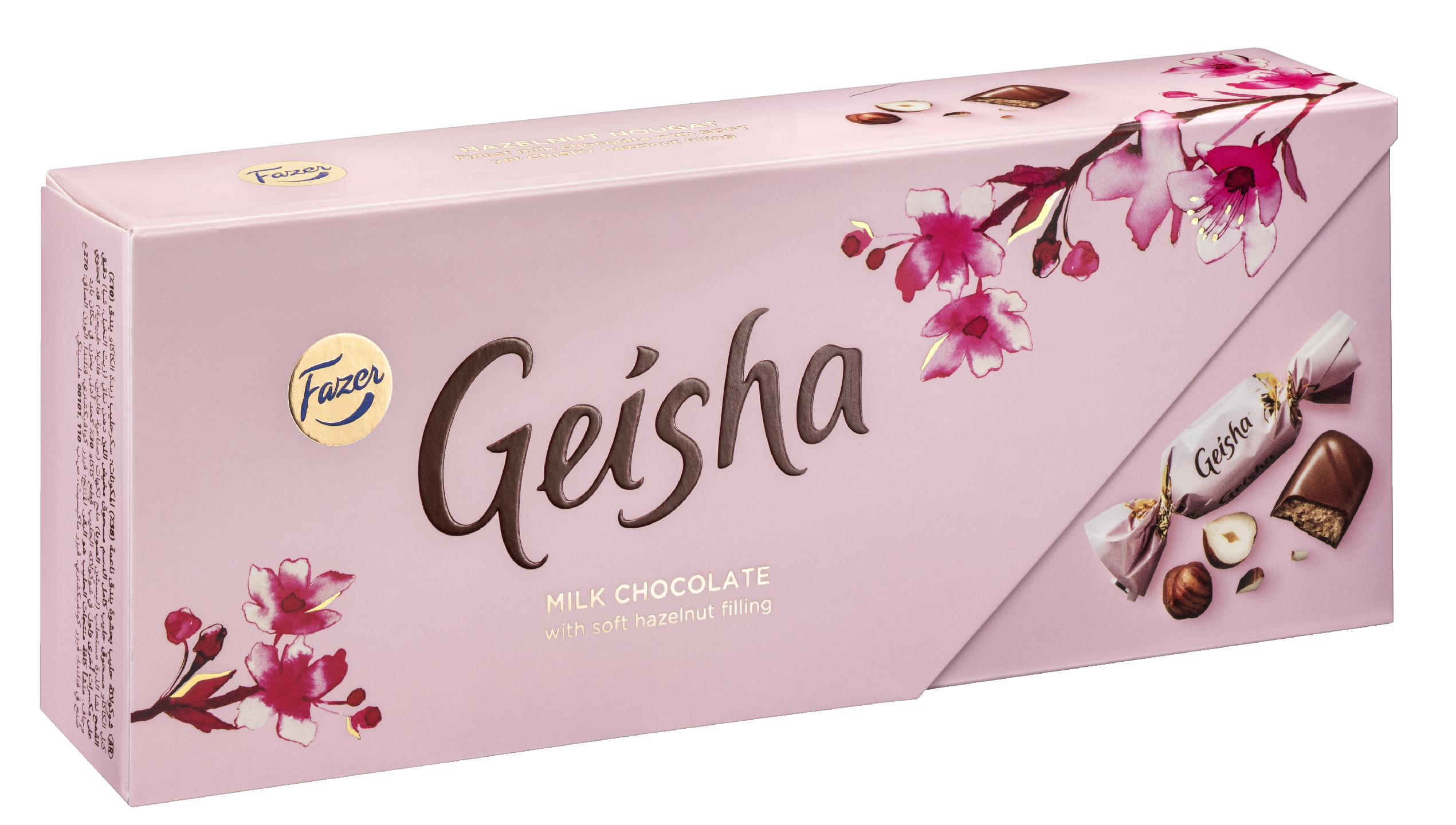 Herkullisia Geisha-konvehteja, joissa pehmeä maitosuklaa kätkee sisäänsä rapean hasselpähkinänougat-täytteen. Tarjoa ystäville hetki yhteistä aikaa ja nauti Geisha-konvehti yhdessä. Kaunis suklaarasia on myös lahja, joka muistetaan. Noudatamme kaakaonhankinnassamme Fazerin kaakaovisiota. Lue lisää www.fazercocoavision.com.