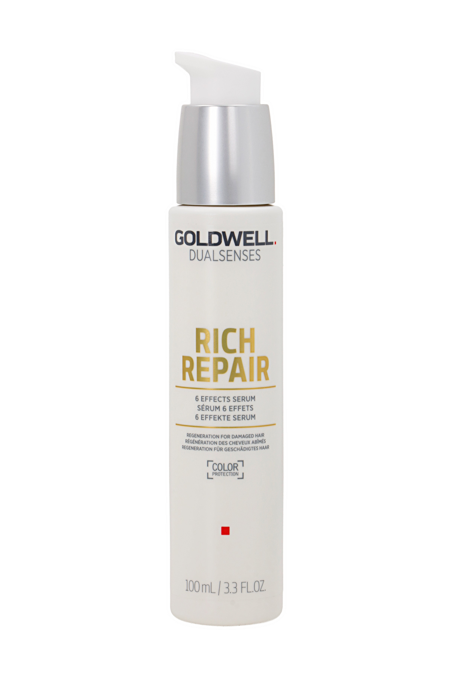 Goldwell Dualsenses Rich Repair 6 Effects Serum syvähoitaa kuivia ja vaurioituneita hiuksia kuudella eri tavalla.
