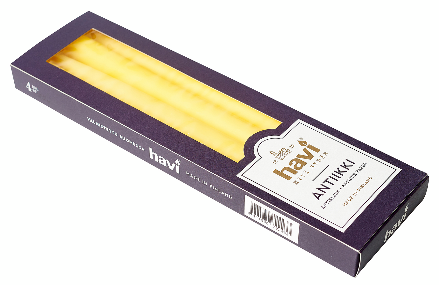 Havin kotimaiset keltaiset antiikkikynttilät 4 kpl, paloaika 8 h