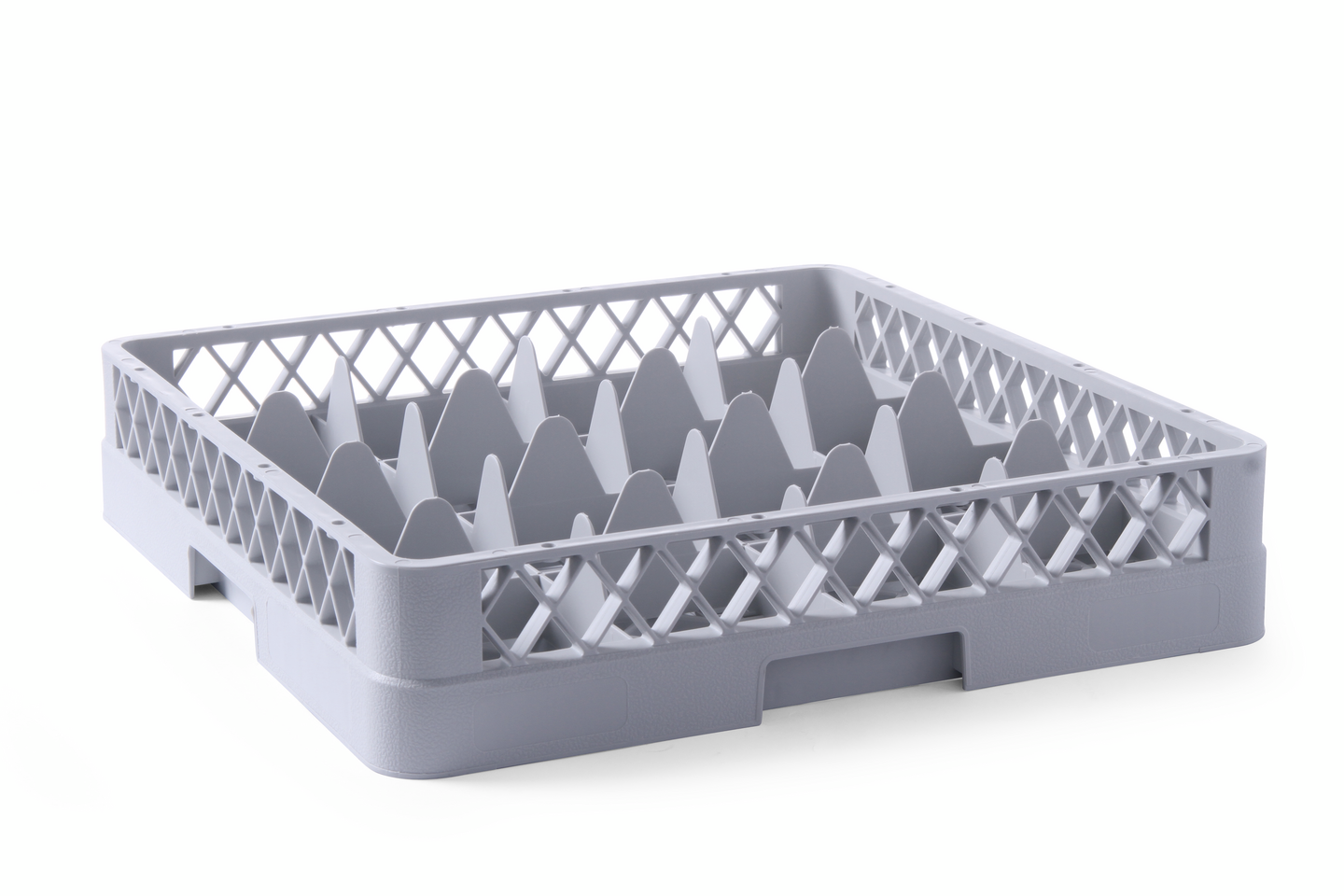 Muovinen lasikori ilman korotusosaa. Lokeroiden määrä 16 kpl. Lasin halkaisija max. 10,6 cm. Lasin korkeus max. 7,8 cm.