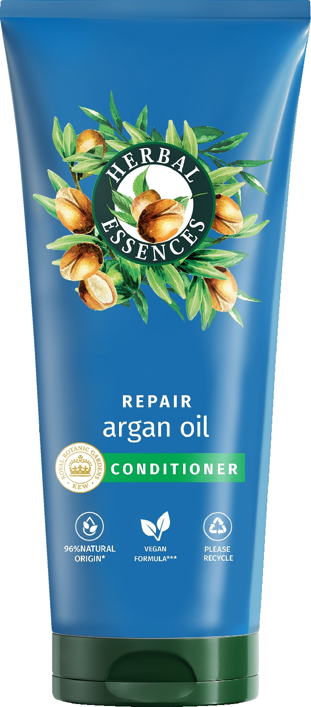 Anna hiuksillesi uutta elinvoimaa luonnosta. Herbal Essences Argan Oil Repair hoitoaine auttaa ravitsemaan vaurioituneita hiuksia tehden niistä sileät ja kiiltävät. Täyteläinen eksoottinen tuoksu virkistää ja kohottaa mielialaa. Hoitoaine sisältää kasvipohjaisia ravitsevia ainesosia, kuten arvokasta arganöljyä. Vegaaninen koostumus hellii hauraita hiuksia. Ylellisen täyteläistä hoitoainetta voidaan käyttää kahdella tavalla: voit joko huuhdella sen pois tai jättää sen hiuksiin ja nauttia virkistävästä tunteesta pidempään. Olemme yhdistelleet luonnollista alkuperää olevia ainesosia harkiten, jotta voit hyödyntää kasvien tehon kylpyhuoneessasi. Palauta hiustesi luonnollinen kauneus ja helli aistejasi Argan Oil Repair -tuotesarjamme kokonaisvaltaisella hiustenhoitorutiinilla.