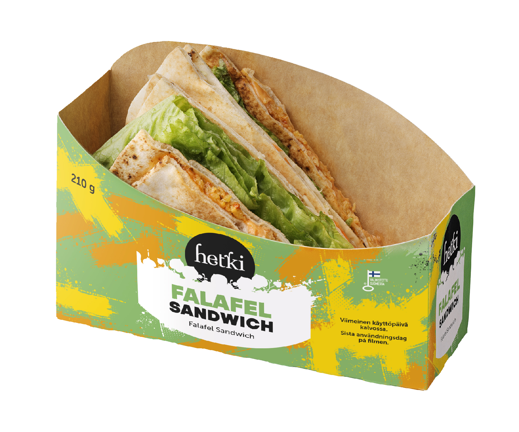 Herkullisen leivän täytteinä falfelmurua, harissamajoneesia, marinoitua raastesalaattia sekä runsaasti vihreää lehtisalaattia. Reilun kokoisissa Hetki sandwicheissä on herkullisia makuja maailmalta flatbread ohutleivän välissä!