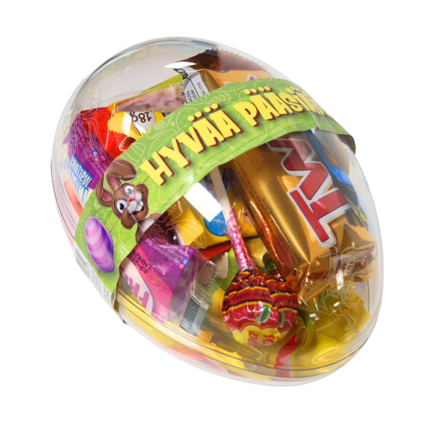 Suosittu karkkimuna, joka sisältää perinteisiä pääsiäistuotteita, sekoitettuna yhteen haluttujen hittituotteiden kanssa.