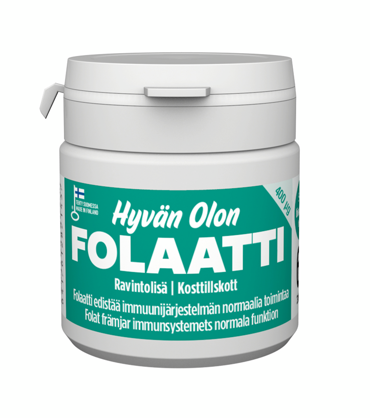 Folaattivalmiste, ravintolisä Vesiliukoinen folaatti on B-ryhmän vitamiini (B9-vitamiini), jota tarvitaan solujen jakautumiseen ja verisolujen muodostumiseen. Sen tarve lisääntyy raskauden aikana. Folaatti edistää: raskauden aikaista kudosten kasvua