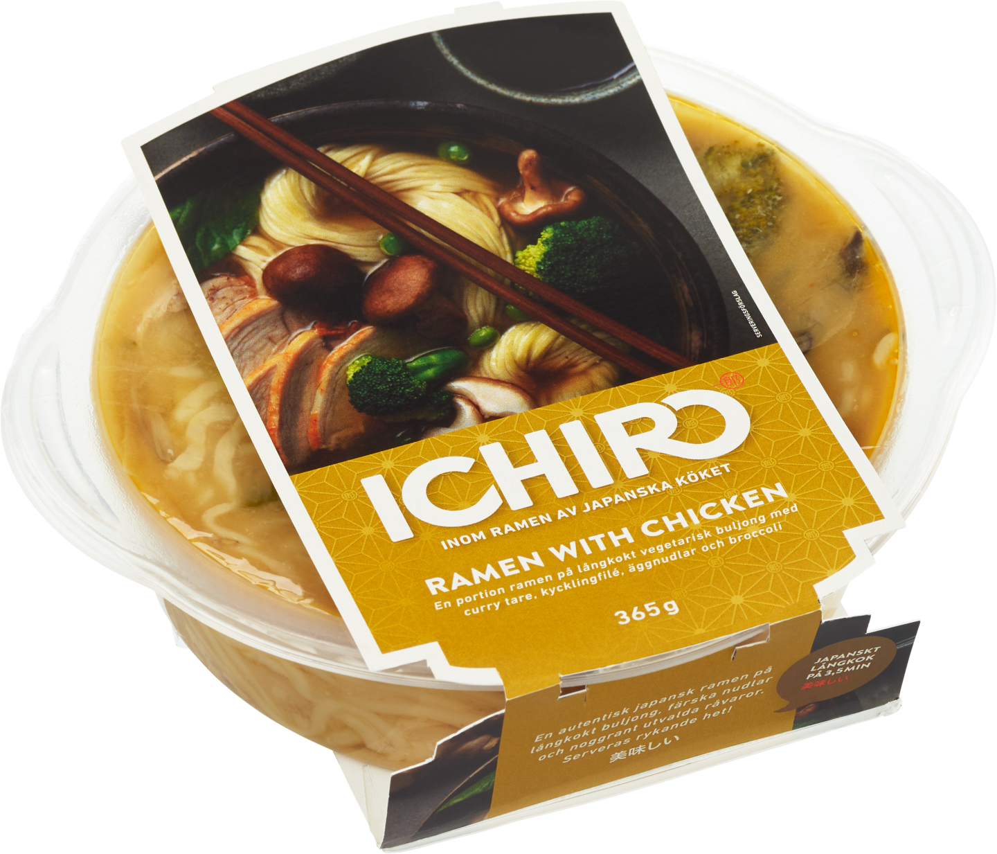 Liemi 60% (((Vesi, SOIJAkastike (SOIJApavut, VEHNÄ, OHRA), sokeri, suola, rypsiöljy, kelp-uutetta, hydrolysoitu proteiini (VEHNÄ), hiivauute, raastettu inkivääri, purjo-uute, makuaine (mononatriumglutamaatti, dinatriuminosinaatti), raastettu valkosipuli, sipulitahna (SOIJApavut), etikka, sakeuttamisaine (ksantaanikumi), paprikajauhe), kananliemi (suola, maltodekstriini, hiivauute, aromit, sokeri, kananrasva 3% (kananrasva, antioksidantti (rosmariiniuute)), sipulijauhe, karamellisiirappi, kurkuma, valkopippuri, kananlihajauhe 0,1% (kana, suola, antioksidantti (rosmariiniuute)), suola, curryjauhe (kumina, fenkoli, sarviapila, SINAPPIjauhe, korianteri, chilijauhe, kurkuma, laakerinlehti, currylehti, valkosipulijauhe, neilikka, anis, perunatärkkelys))), KELTUAISnuudelit 15% (VEHNÄJAUHO, vesi, suola, KELTUAISjauhe), luuton kananrintafile* 14% (kananliha 100%), vihannekset 11% (shiitake-sieni, purjo, paksoi, parsakaali). Saattaa sisältää jäämiä maidosta ja selleristä. *Syntynyt, kasvatettu ja teurastettu EU:n alueella