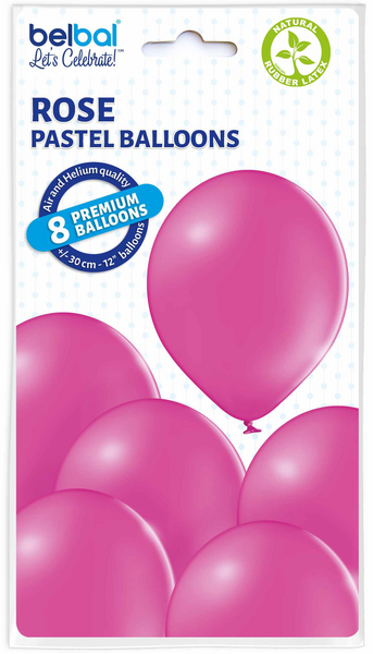 Fuksianpunaiset ilmapallot juhlien koristeeksi. Pussissa 8 kappaletta. Ilmapallot voidaan täyttää ilmapallopumpulla tai heliumilla. Valmistettu luonnonkumista (lateksi).