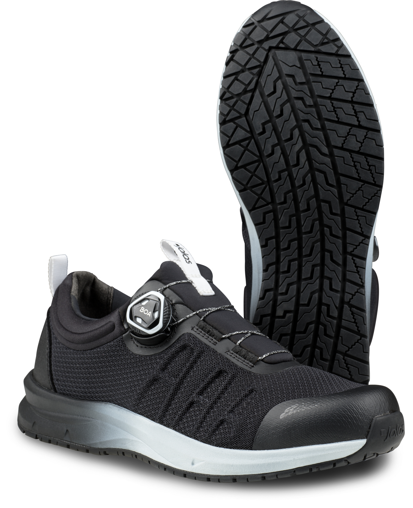Mukava ja sertifioitu työjalkine palvelualalla työskenteleville, jotka ovat jaloillaan koko päivän. Jalkineiden kitkaominaisuudet on testattu ja hyväksytty, ja niissä on iskuja vaimentavat monikerroksiset pohjat. Hengittävä tekstiilikangas tekee jalkineesta viileän. BOA®-kiinnitysjärjestelmä sivulla mahdollistaa täydellisen istuvuuden ja sukkamainen rakenne parantaa käyttömukavuutta. ESD-sertifiointi takaa suojan herkille elektronisille laitteille. Unisex-malli.