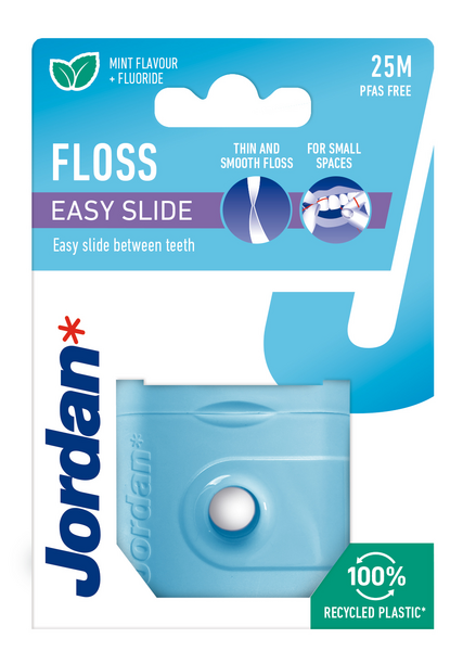 Jordan Easy Slide -hammaslanka liukuu helposti hammasväleissä rispaantumatta. Hammaslankaan on lisätty fluoria ja hammastahnaa - ainutlaatuinen 2in1-yhdistelmä, joka suojaa, puhdistaa ja antaa raikkaan tunteen. Sisältää hengityksen raikastavaa minttua.