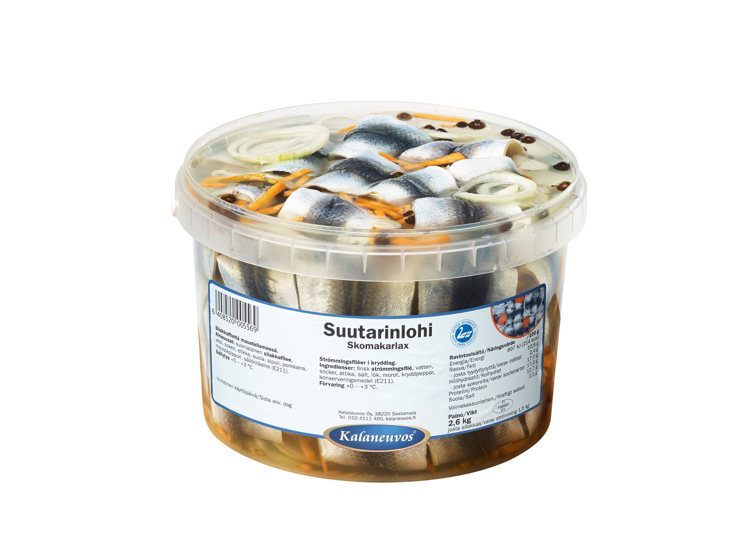 LaktoositonKalaneuvoksen suutarinlohi kunnioittaa perinteitä, sillä kyseessä on arvostettu suomalaisten pitopöytien herkku. Suomalaisen silakkafileen lisäksi suutarinloheen tuovat makua sokeri, etikka, suola, sipuli, porkkana ja maustepippuri.