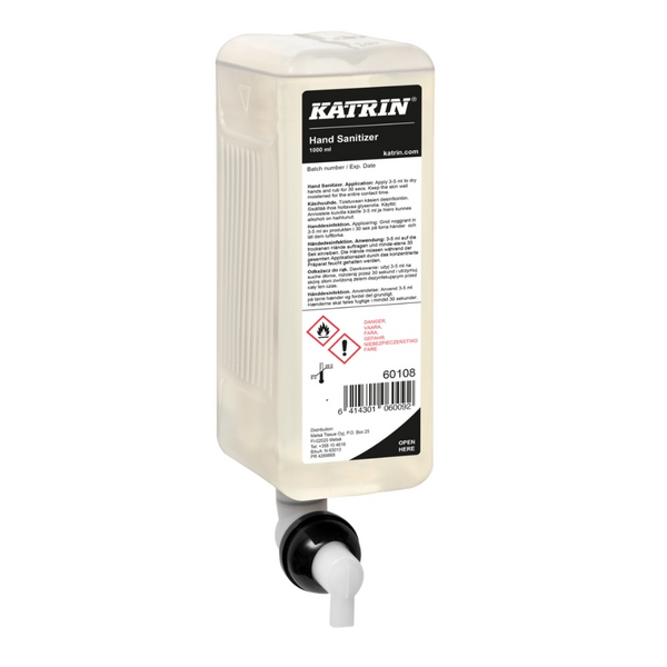 Mieto, ihoystävällinen käsien desinfiointiaine. Leviää nopeasti iholle, jättää ihon puhtaan tuntuiseksi. Erittäin tehokas ja nopeasti toimiva. 80% alkoholia. Hajusteeton. Sopii kaikkiin 1 000 ml Katrin-annostelijoihin.