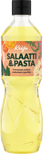 VegaaninenKeiju Salaatti & Pasta -öljy on Provencen yrteillä maustettu rypsiöljy joka tuo yrttistä makua ja täyteläisyyttä erityisesti salaatteihin ja pastaruokiin. Öljyä voi käyttää laajasti myös muuhun ruoanlaittoon ja suolaiseen leivontaan. Provencen yrtit on klassinen yrttiseos joka tuo mieleen Etelä-Ranskan ja Välimeren keittiön auringon ja lämmön. Monipuolinen makuyhdistelmä sopii erinomaisesti liha-, kala-, kasvis- ja pastaruokiin sekä salaatteihin, pataruokiin ja keittoihin.