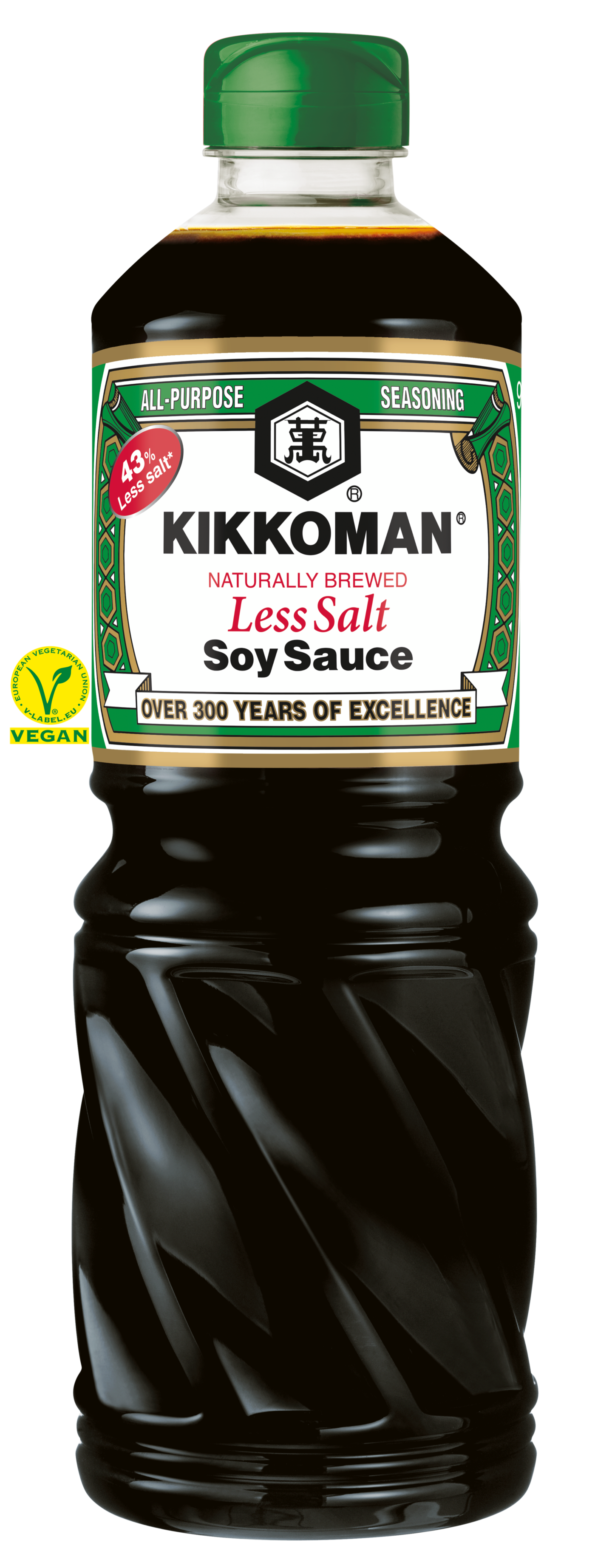 Kikkoman Less Salt sisältää 43% vähemmän suolaa, kuin perinteinen. Maku on yhtä täyteläinen, kuin perinteisen soijakastikkeen. Kikkoman Less Salt -soijakastiketta voidaan käyttää yhtä monipuolisesti kuin perinteistä Kikkoman-soijakastiketta. Se antaa mainion säväyksen kastikkeisiin, keittoihin, kasvisruokiin sekä paistinpannulla valmistettuihin ruokiin. Katso reseptejä www.kikkoman.fi